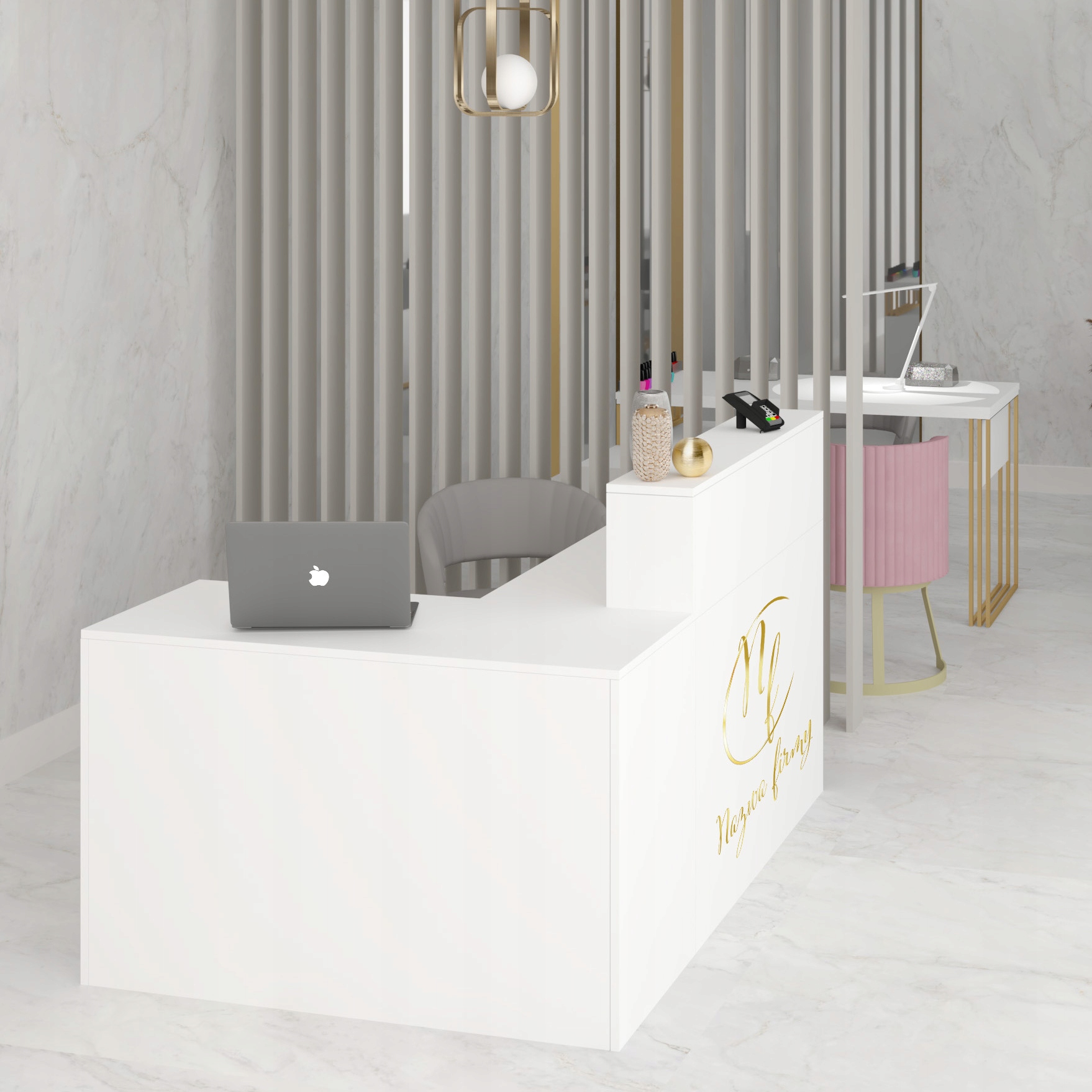Рецепция Klara 5 — это большая модульная угловая стойка для гостиной, магазина, кабинета или офиса. Со стороны клиента он приподнят благодаря удлинителю. Со стороны ресепшена расположена большая столешница 120х50 с закрывающейся частью благодаря удлинителю и рабочая зона, где можно комфортно работать за компьютером. Контейнер на колесиках имеет 3 ящика для необходимых вещей, а благодаря колесам он мобилен и его можно разместить в любом месте под прилавком.