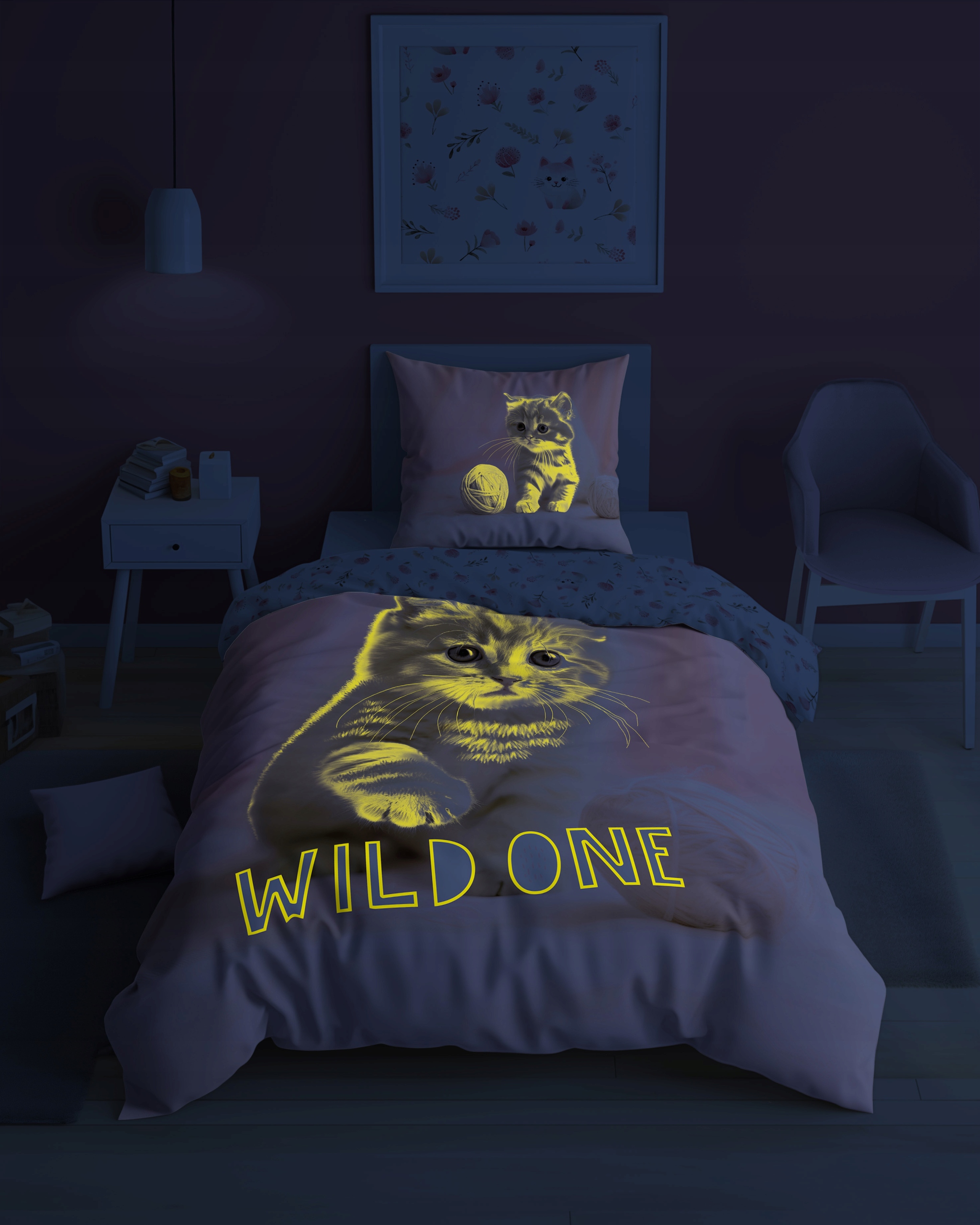 ПОСТЕЛЬНОЕ 140х200 СВЕТЯЩИЕСЯ кошки, кошки, котята, МОЛОДЕЖНОЕ, детское