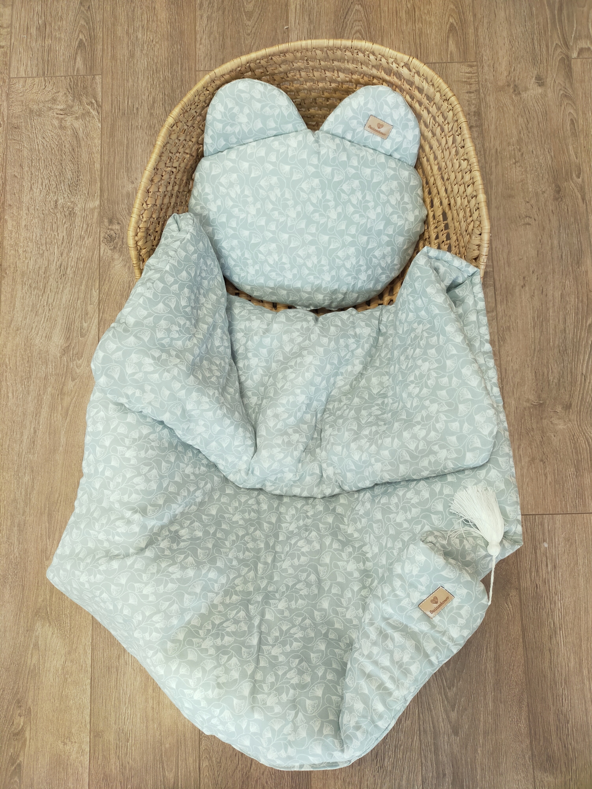 Комплект идеально подходит для детской кроватки, корзинки Моисей или коляски.