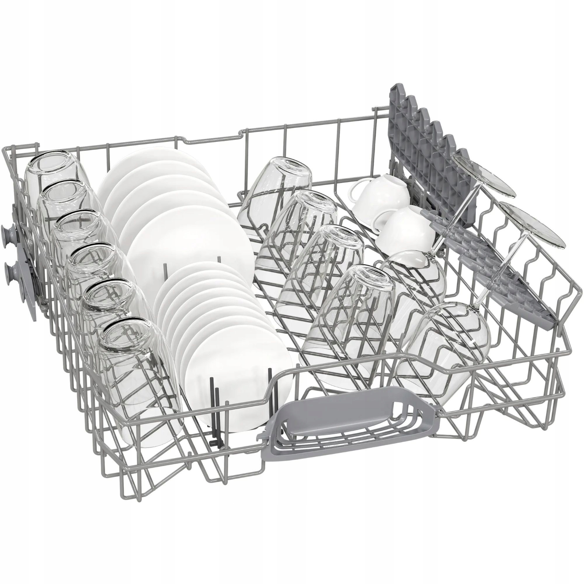 Система регулировки верхней корзины Rackmatic позволяет настроить внутреннее пространство в соответствии с вашими текущими потребностями. Система позволяет менять настройку корзины на разной высоте, а выбранное положение можно легко изменить, даже когда корзина заполнена. Благодаря этому вы сможете адаптировать интерьер под свои нужды даже для очень высоких тарелок в нижней корзине или высоких стаканов или кружек в верхней корзине.