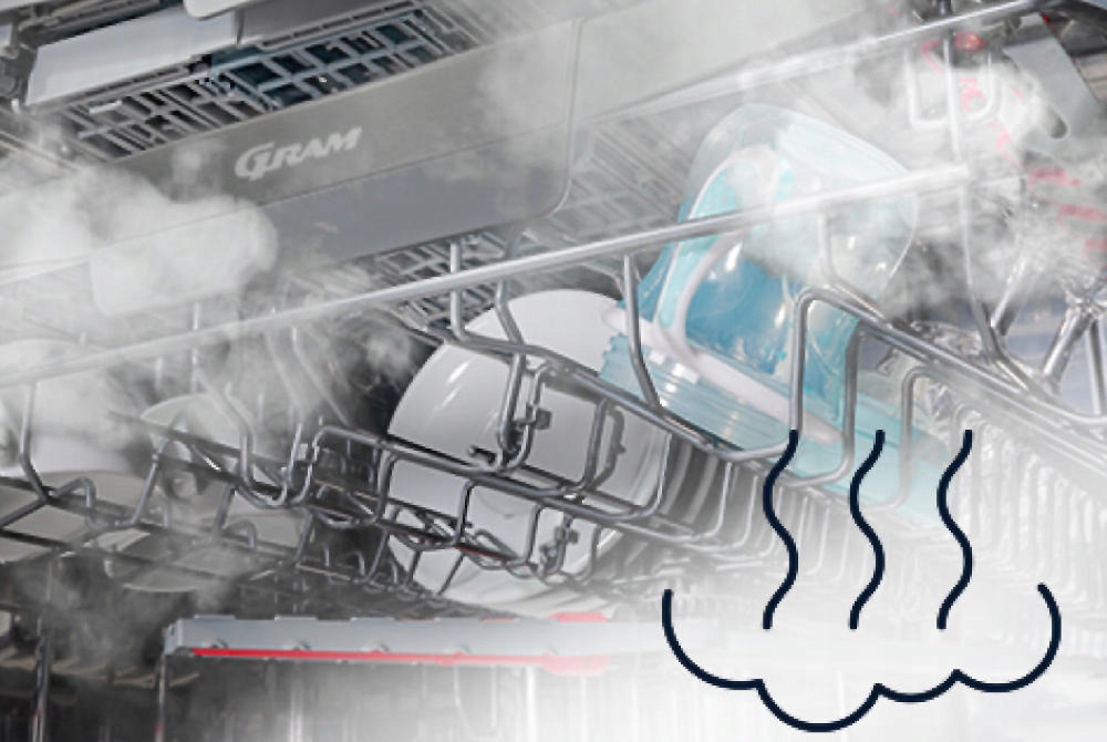 Благодаря безопасной функции AquaStop вы можете быть уверены, что вашей квартире не грозит затопление по вине посудомоечной машины GRAM. Соответствующие клапаны в кране перекрывают подачу воды, а насос опорожняет посудомоечную машину от ее остатков в случае поломки или протечки.