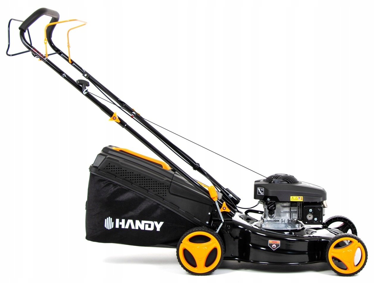 У модели очень большая корзина емкостью 55 литров. Если мы хотим, чтобы наш газон был идеально чистым, вариант кошения с корзиной нам точно подойдет.