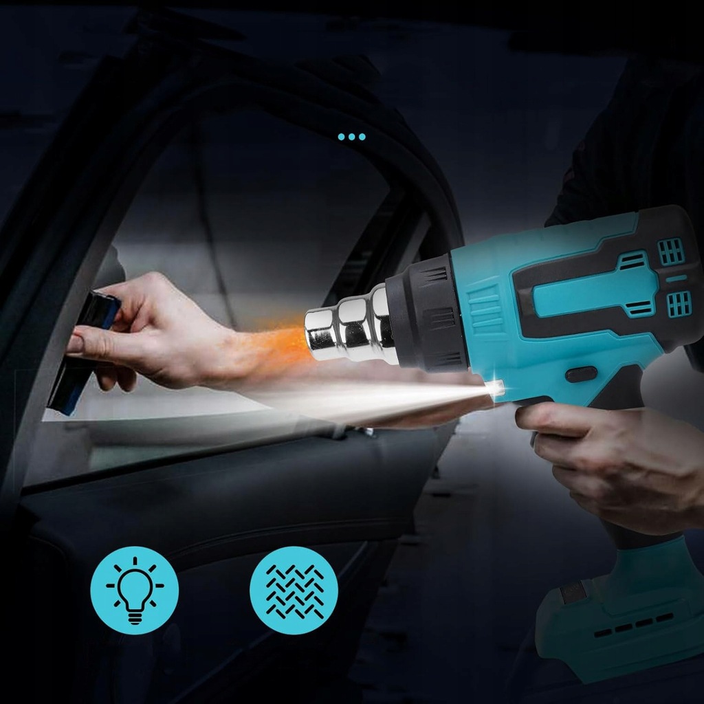 МОЩНАЯ ЭЛЕКТРИЧЕСКАЯ ТЕПЛОВАЯ ПИСТОЛЕТКА СО СВЕТОДИОДНОЙ ПОДСВЕТКОЙ ДЛЯ АККУМУЛЯТОРОВ MAKITA 18 В + 3 НАСАДКИ