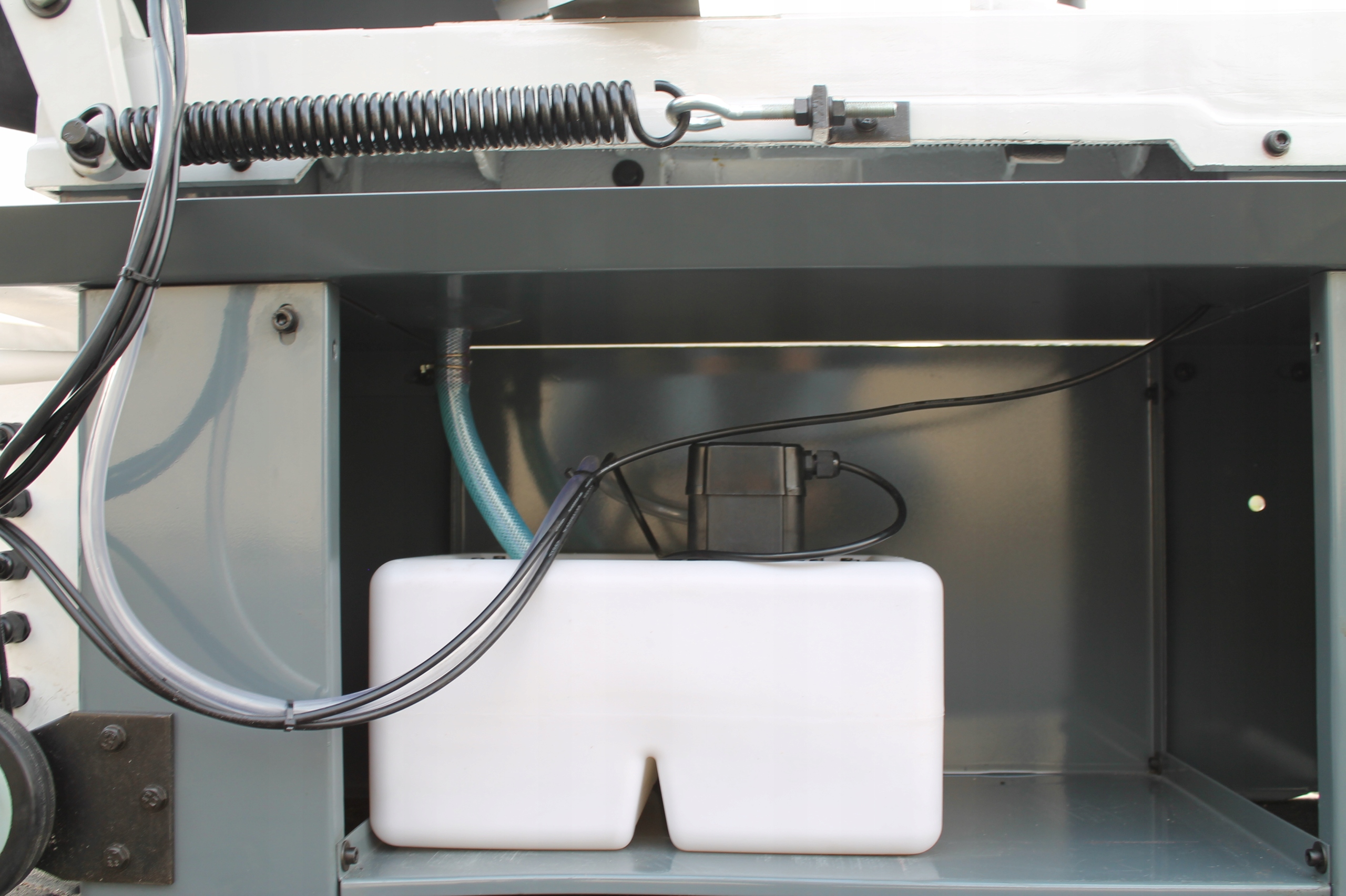 - Обе направляющие ленты оснащены системой охлаждения, подающей охлаждающую жидкость к ленте и режущему элементу.