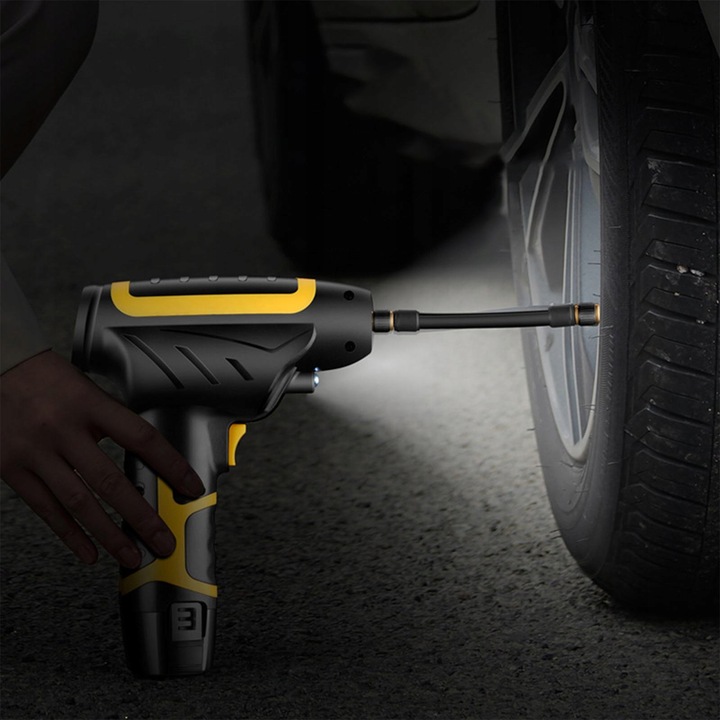 Компактный беспроводной компрессор для накачивания шин. Питание от встроенного аккумулятора, заряжаемого через USB-кабель (входит в комплект). Удобная ручка облегчает накачивание колес, а четкий ЖК-дисплей упрощает настройку требуемого давления воздуха и замену устройства. Удобный гибкий шланг и дополнительные сменные насадки (3 штуки) облегчают работу с устройством.