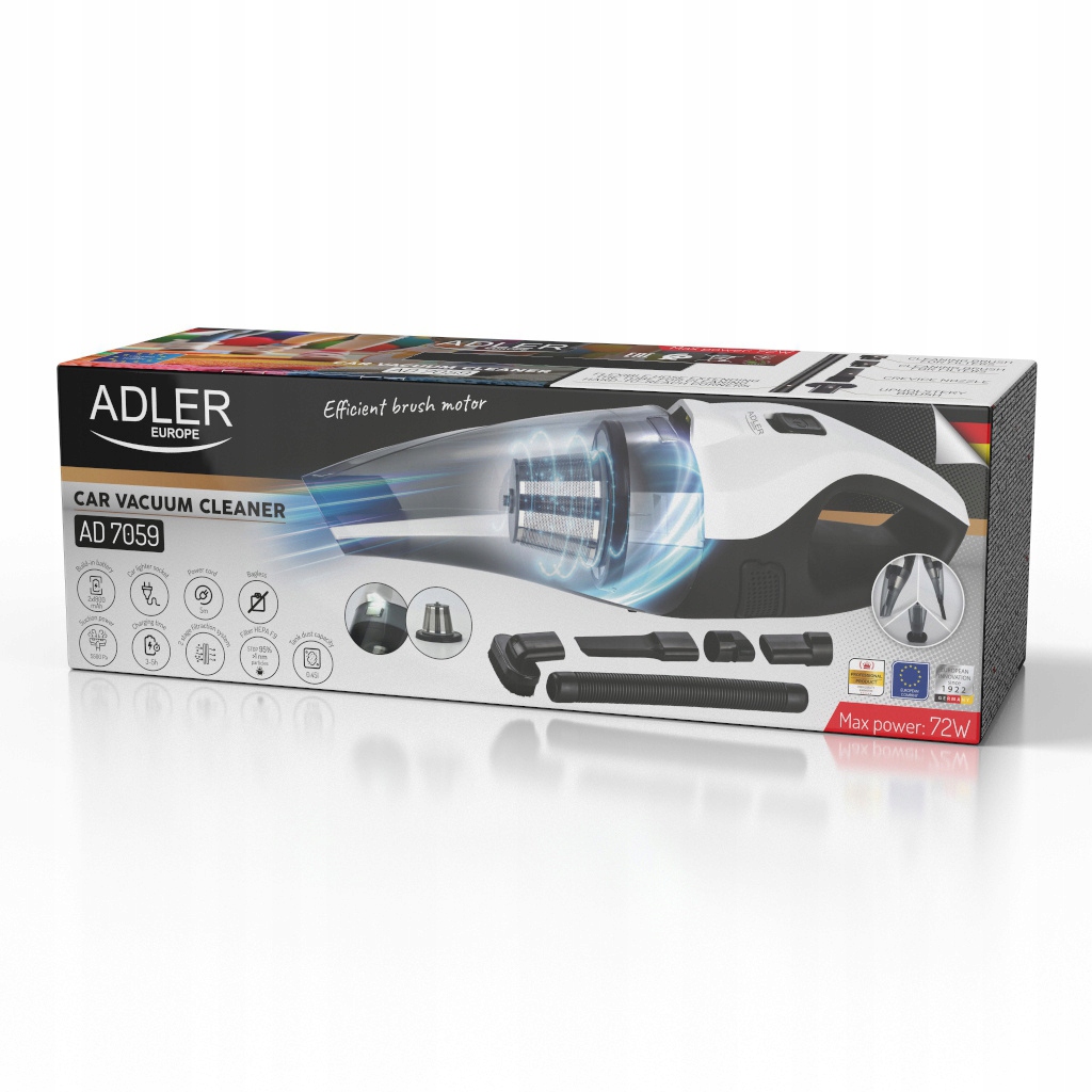 Двигатель мощностью 60 Вт (от аккумулятора) или 84 Вт (от автомобиля) обеспечивает высокую мощность всасывания. Он без проблем справляется с пылью, песком и мелкой грязью.