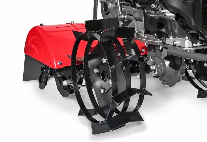 б >уникальная система работы рабочих ножей. Заключается в противоположном направлении вращения внешних ножей по отношению к внутренним. Благодаря этому мы добиваемся лучшего рыхления и перемешивания пахотного слоя почвы, при этом меньшие силы действуют на ведущие колеса и рукоятки.
