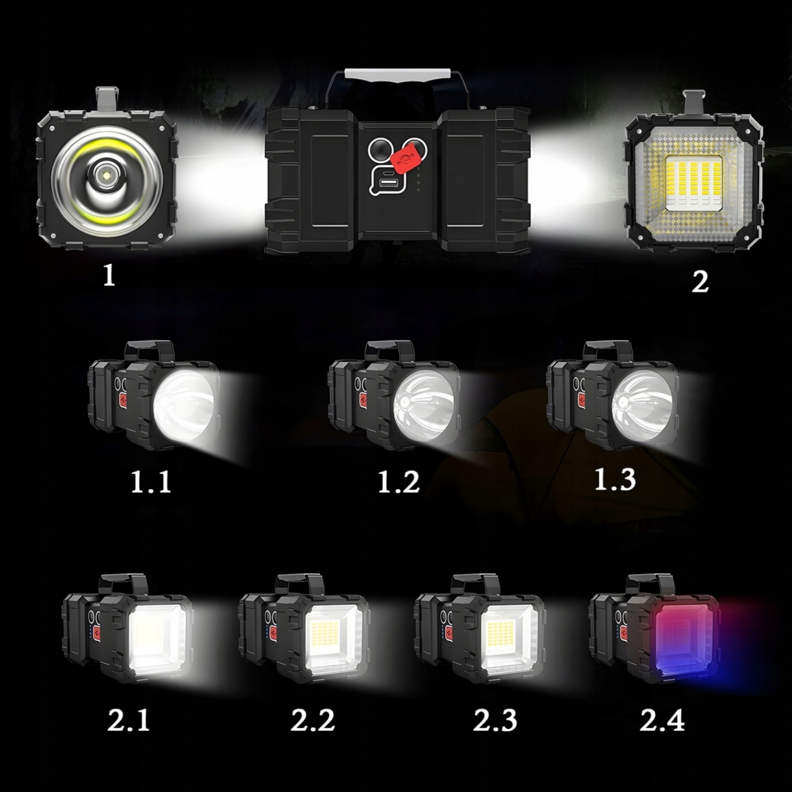 ✅ МОЩНЫЙ СВЕТОДИОДНЫЙ ДВУХСТОРОННИЙ АККУМУЛЯТОРНЫЙ ФОНАРЬ ПОИСК ЦВЕТНОЙ МОЩНОСТИ