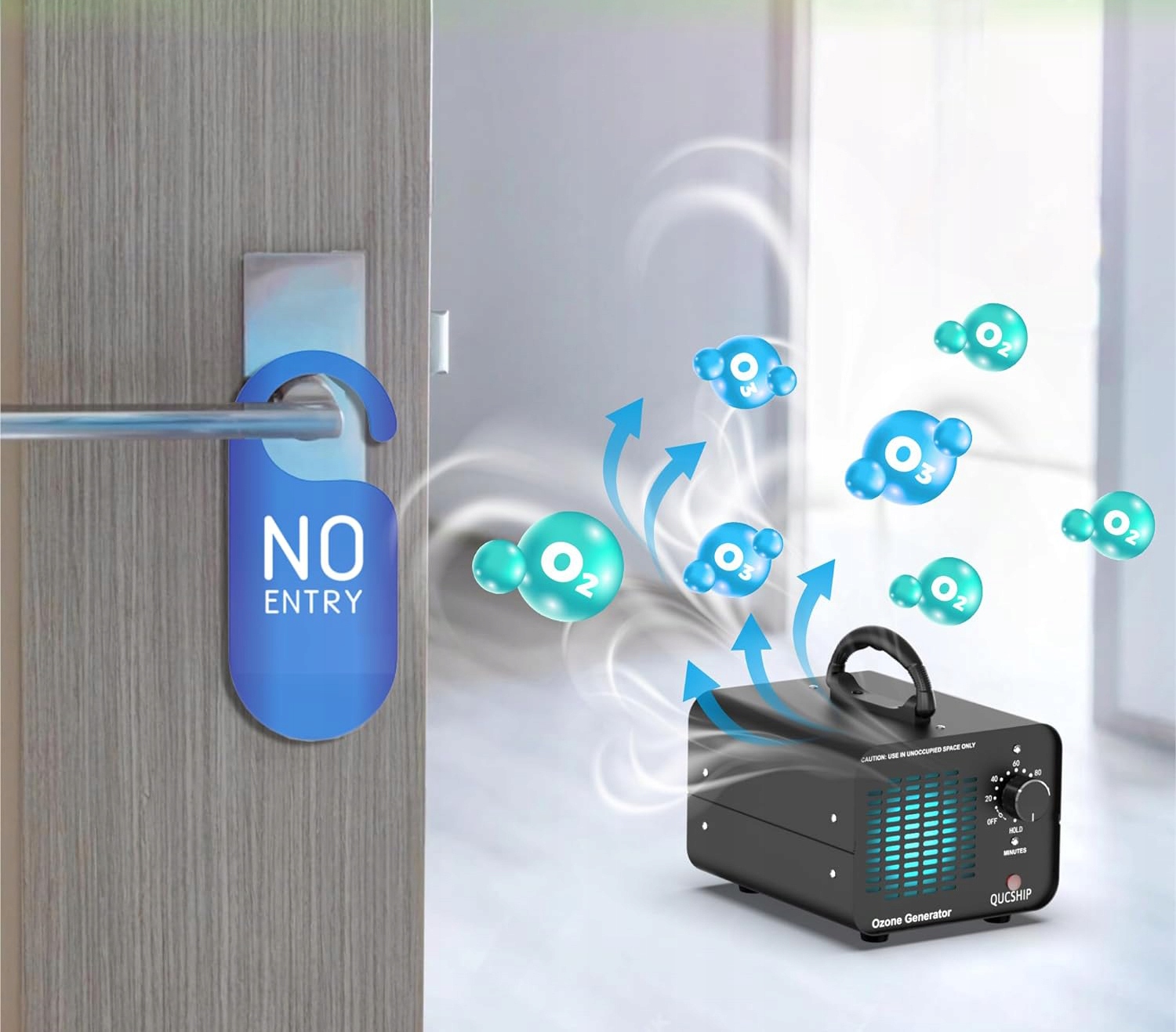 Озон эффективно удаляет неприятные запахи и заменяет их нейтральным запахом. Озон (O₃) содержит три атома кислорода вместо O₂, которым вы дышите. Третий атом кислорода делает озон чрезвычайно реакционноспособным и присоединяется к другим молекулам. Когда загрязняющие вещества встречаются с озоном, происходит окисление, и обе стороны разрушаются, а O₃ по сути возвращается в пригодный для дыхания O₂.