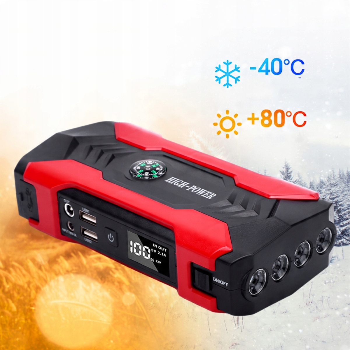 - 🚗Автомобильный блок питания с пусковым устройством емкостью 28000 мАч: Наш портативный автомобильный блок питания с пусковым устройством емкостью 28000 мАч может заряжать ваши устройства быстрее через выходные порты USB 3 в 1 (5 В). -2,1 А | 19 В/16 В/12 В) и совместим практически со всеми зарядными устройствами USB, включая мобильные телефоны, планшеты, цифровые камеры и другие электронные устройства. Автомобильное зарядное устройство можно заряжать с помощью прилагаемой вилки питания 15 В-1 А и соединительного кабеля автомобильного прикуривателя 12 В-1 А.