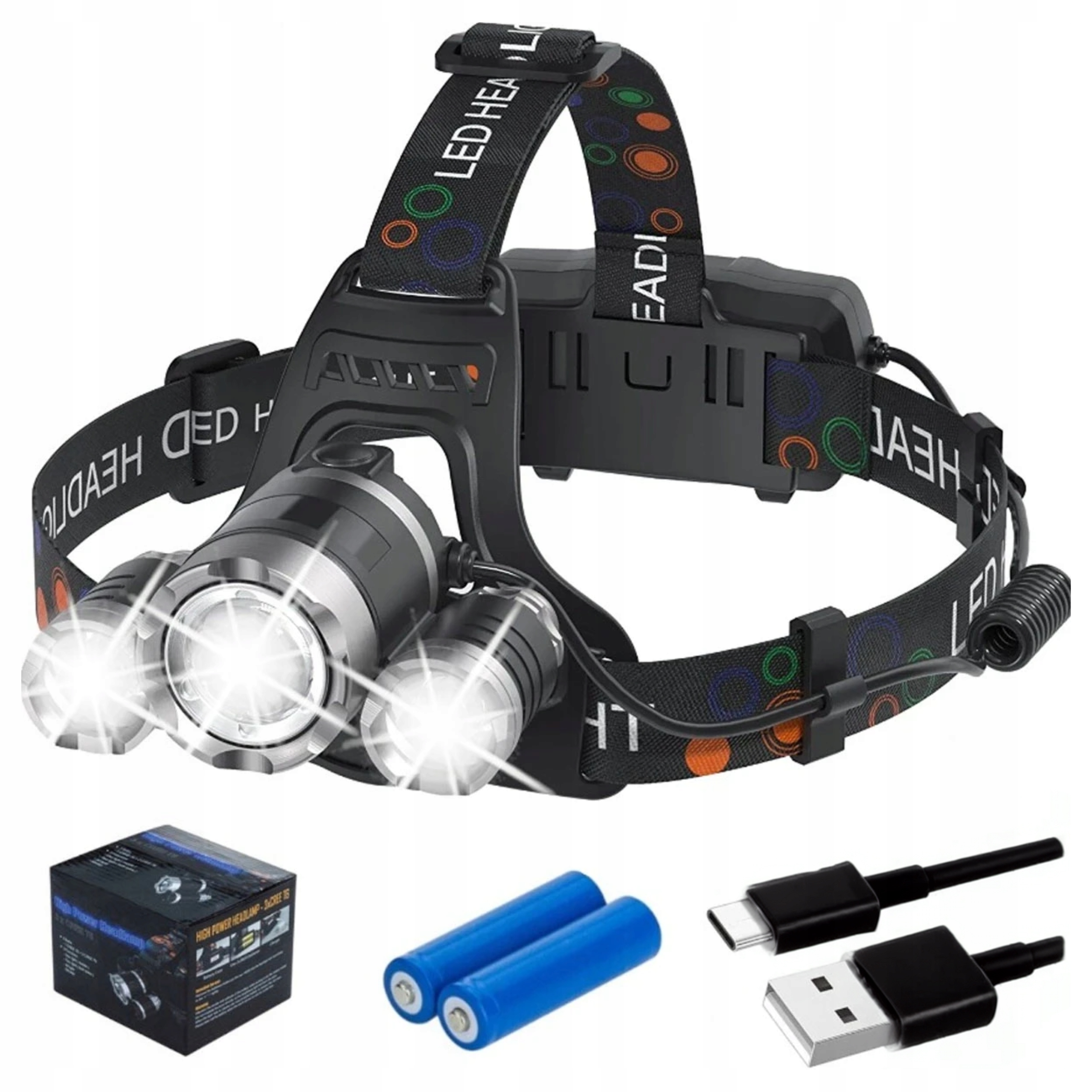 МОЩНАЯ ФАРА 3x СВЕТОДИОДНАЯ ФАРА T6 + 2 АККУМУЛЯТОРА