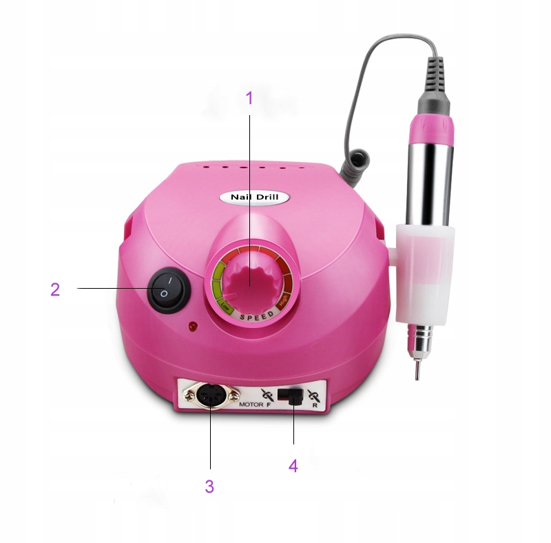 Профессиональная дрель для ногтей Rosfix "Розовая Пантера" мощностью 65 Вт с ножной педалью и розовыми фрезами