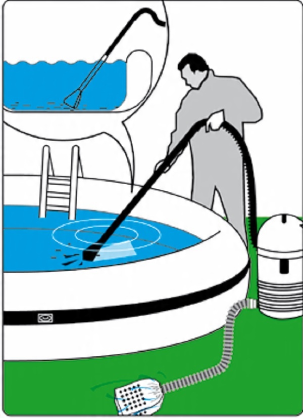 Пылесосим дно бассейна или пруда и после наполнения бака из машины бак опорожняется через фильтр. Воду можно повторно использовать в бассейне.