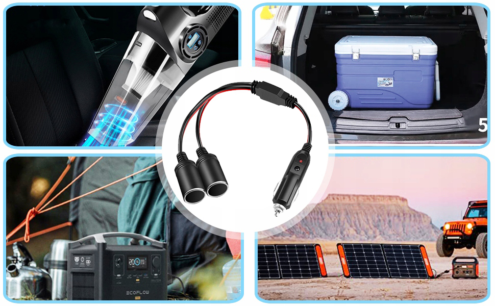 Две розетки прикуривателя 12 В / 24 В идеально подходят для навигатора, автомобильной камеры, подогрева сидений, автомобильного холодильника*, пылесоса, очистителя воздуха и других автомобильных товаров. Широко используется в автомобилях, кемперах, грузовиках, лодках, туристических прицепах, пикапах, фургонах во время путешествий. Удовлетворите ваши потребности в большем количестве розеток для прикуривателей.