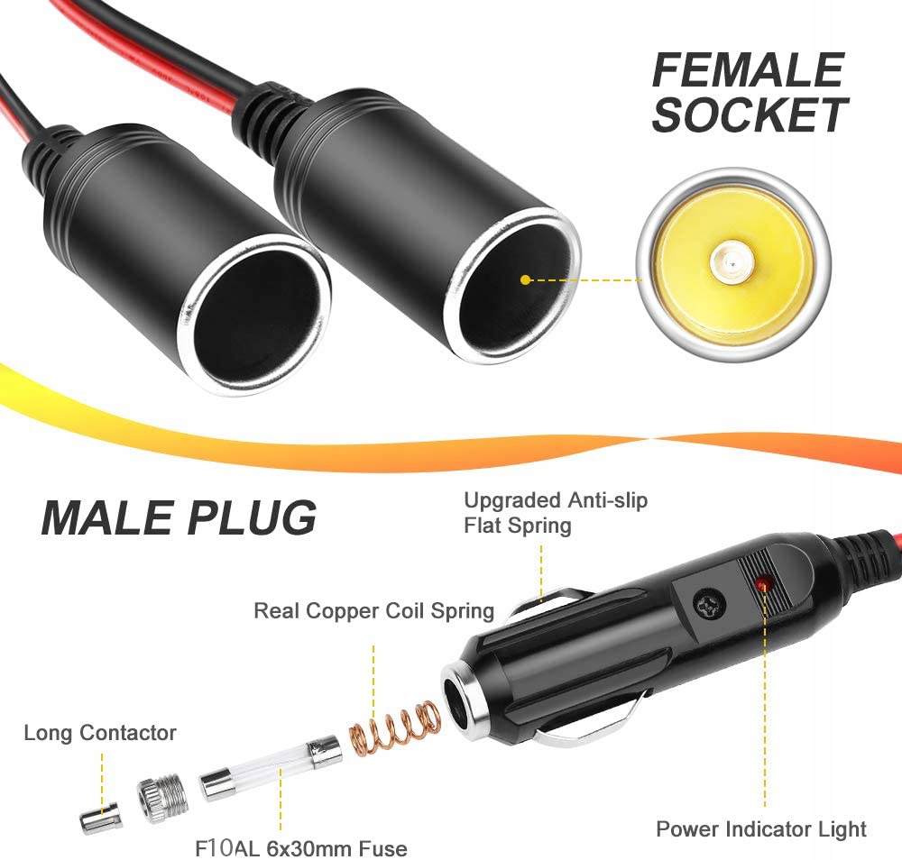 Две розетки прикуривателя 12 В / 24 В идеально подходят для навигатора, автомобильной камеры, подогрева сидений, автомобильного холодильника*, пылесоса, очистителя воздуха и других автомобильных товаров. Широко используется в автомобилях, кемперах, грузовиках, лодках, туристических прицепах, пикапах, фургонах во время путешествий. Удовлетворите ваши потребности в большем количестве розеток для прикуривателей.