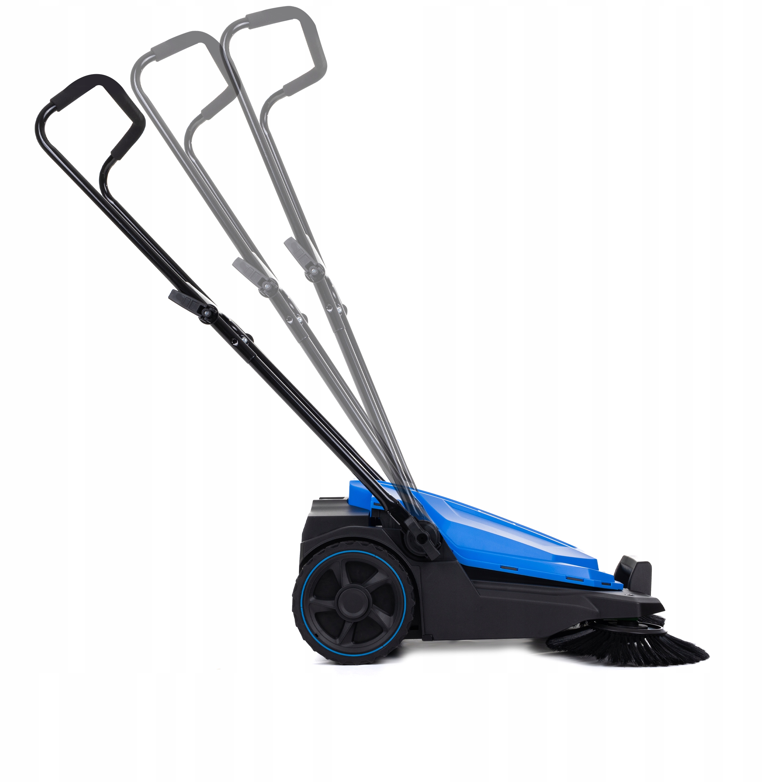 Подметальная машина имеет ручной механизм, включающий вращение щеток. Он генерируется при движении вперед, что обеспечивает бесшумную работу.