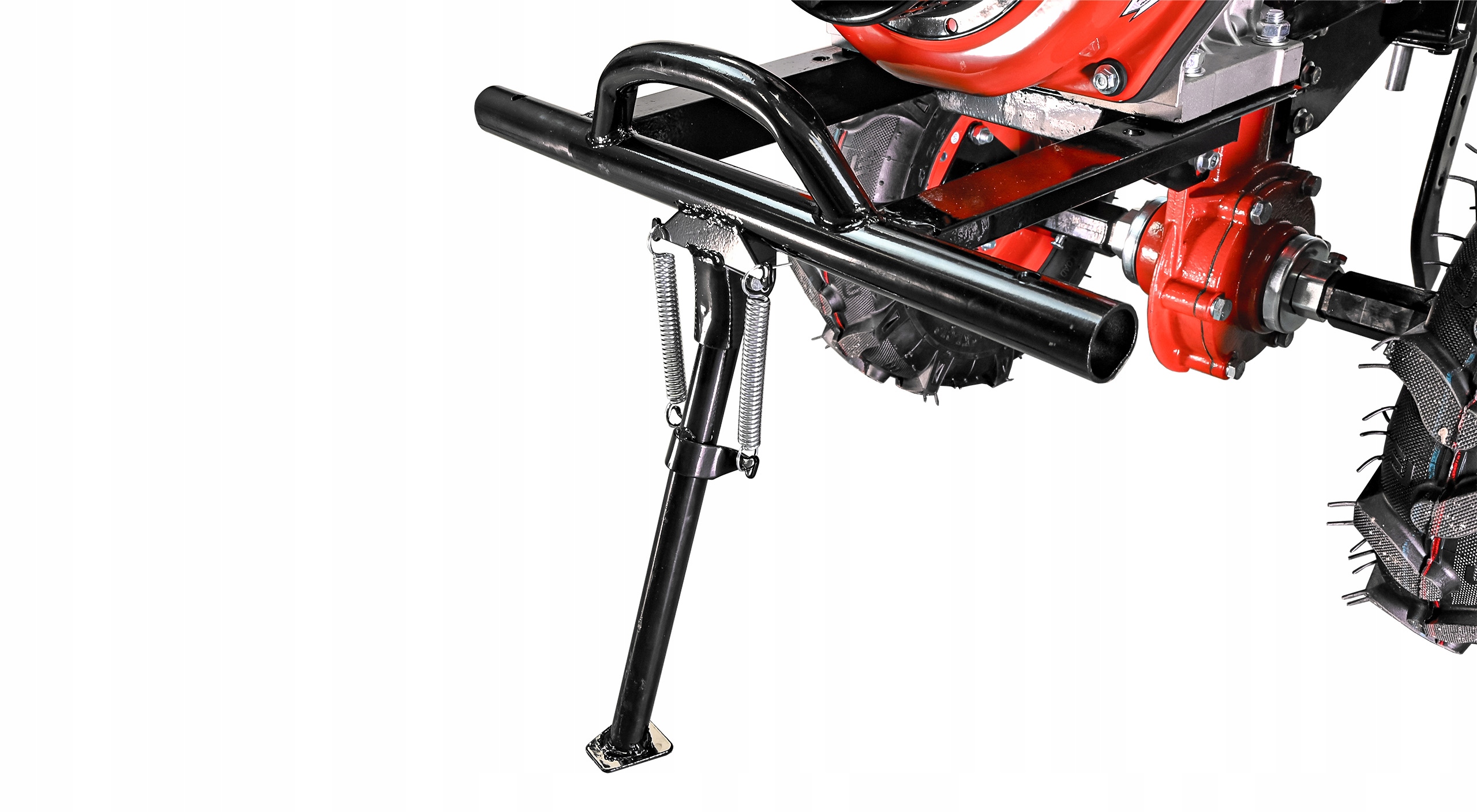 - ✅ Передняя опорная нога - устойчивое положение машины при стоянии, обслуживании или установке аксессуаров.