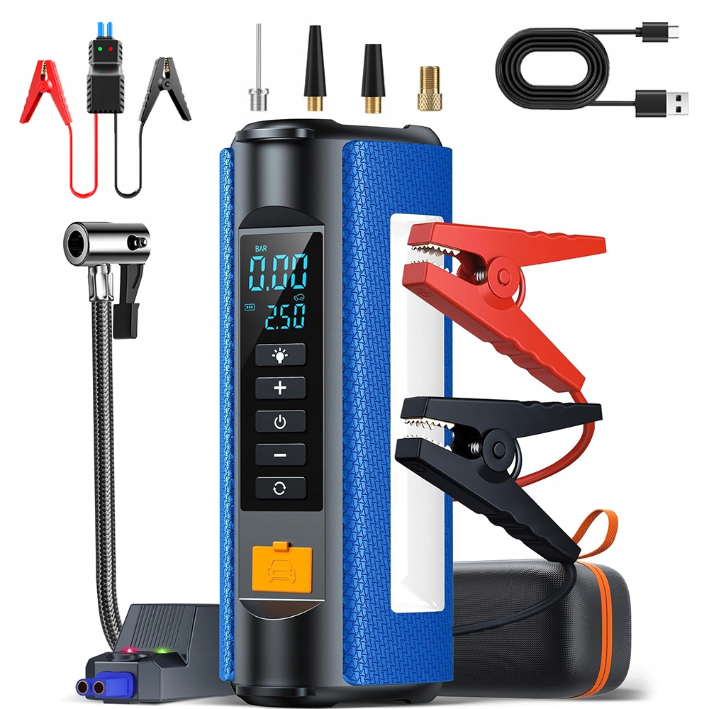 ✅💪【Автомобильный блок питания для стартера на 2000 А】Портативный воздушный компрессор имеет пиковый ток 2000 А, что позволяет за секунды запустить автомобили с бензиновым двигателем объемом 7,0 л и дизельным двигателем объемом 5,0 л, напряжением 12 В, за считанные секунды. Мощный усилитель автомобильного аккумулятора – до 20 запусков на одном заряде даже при экстремальных температурах (для запуска автомобиля достаточно чуть более 25% заряда). Подходит для легковых, грузовых автомобилей, мотоциклов, транспортных средств и многого другого.