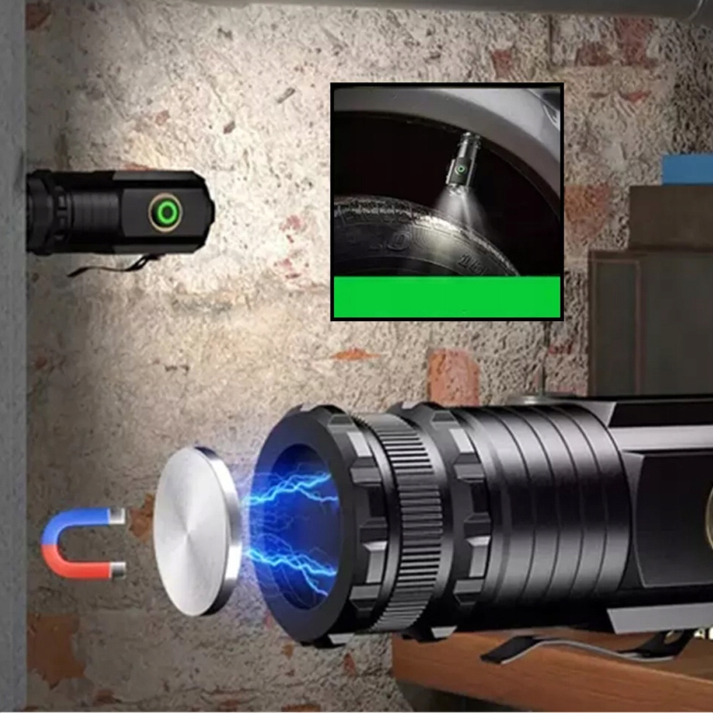 Светодиодные тактические фонари, 2000LM, яркий фонарик с 5 режимами работы, с USB-кабелем для зарядки, функцией магнитного присасывания.