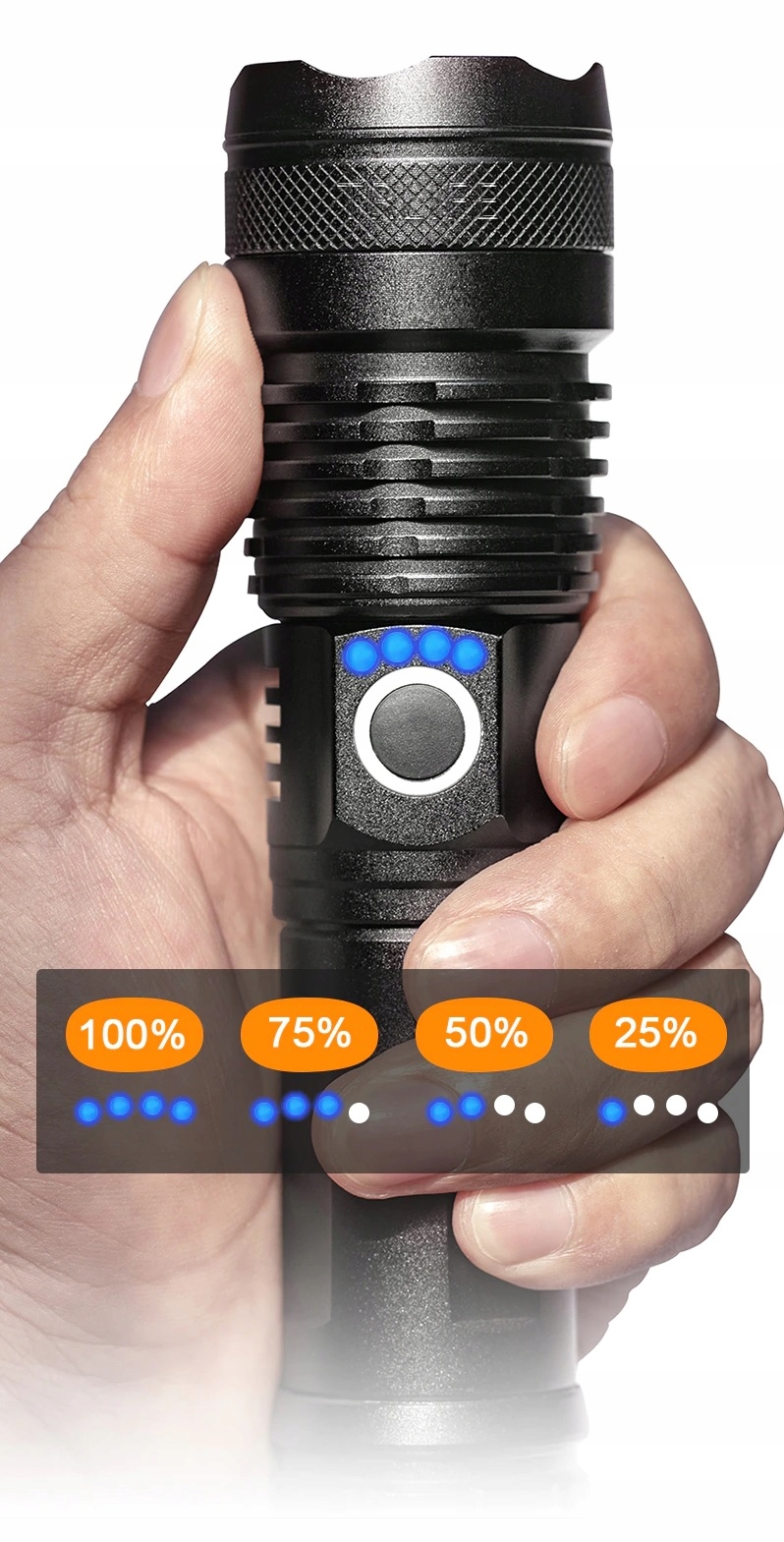 ПОТУЖНИЙ ВІЙСЬКОВИЙ ЛІХТАРИК CREE XHP50 ZOOM RANGE 2 KM TACTICAL RESCUE SOS