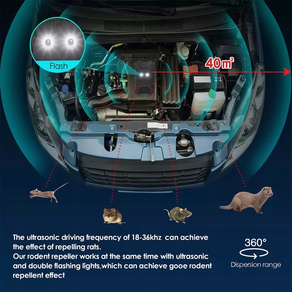【Автоматический репуллер ультразвуковой мыши с двумя сильными мигающими огнями】: D Очень эффективный репуллер норки может постоянно меняться ультразвуковые волны с частотами от 18 кГц до 36 кГц, которые едва слышат человеческому уху и не позволяют животным адаптироваться к этому пакету. Устройство также излучает яркую вспышку света, которая отпугивает грызунов и норки от вашей собственности или транспортного средства. Он не содержит приманки, его можно использовать в качестве альтернативы ловушкам мышей, ящикам для приманки или живыми ловушками. (1) Поместите 4 батареи AA (не включены). (2) Вы также можете подключить его к источнику питания DC 5-12 V с помощью кабеля DC-USB (не входит в комплект). (3) Красная и черная труба репеллента насекомых в виде норки должна быть подключена непосредственно к 12-вольтовой автомобильной батарее. Если при запуске транспортного средства обнаруживаются вибрации, репуллер мыши переключается в режиме ожидания. Когда автомобиль останавливается, мышь снова начинает работать. Вам не нужно беспокоиться о влиянии на человеческое тело, вы можете безопасно использовать его. Мышь и крысы изготовлены из экологически чистого, высококачественного материала ABS, долговечного и устойчивого тепла, и не нанесет никакого повреждения вашего автомобиля