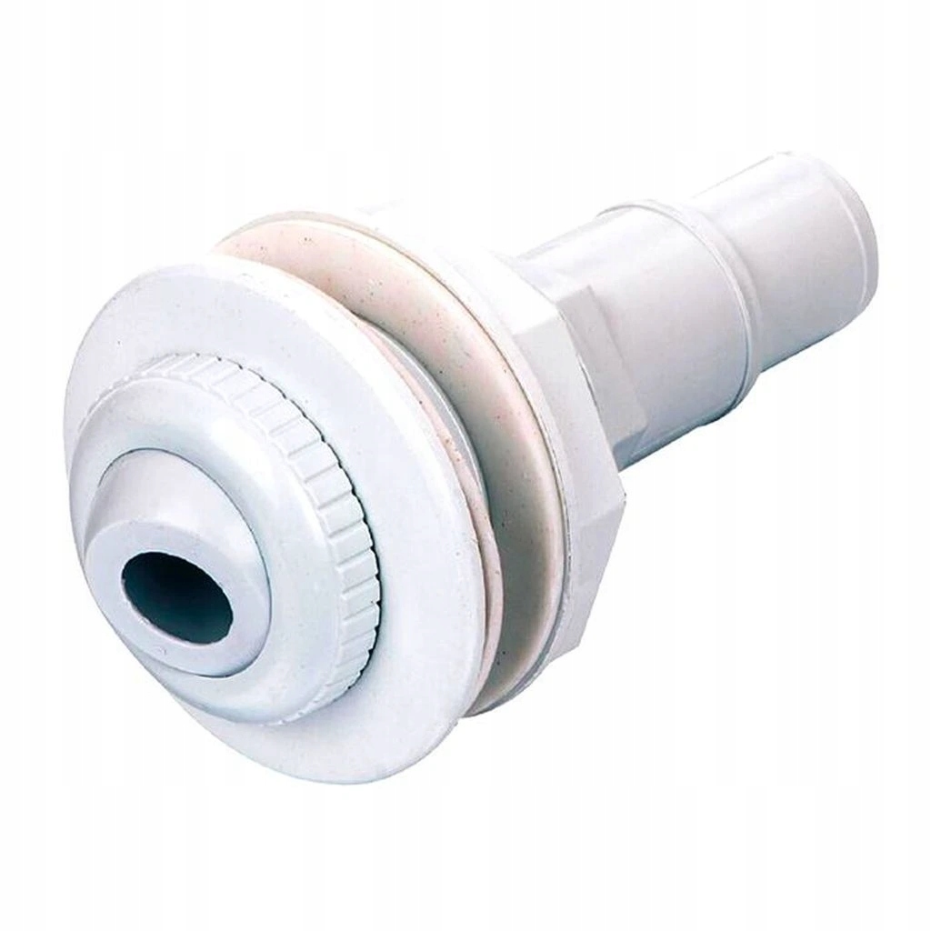 Насадка обратки изготовлена из прочного пластика и состоит из шести частей. Основание состоит из корпуса форсунки (с наружной и внутренней резьбой), пластиковой контргайки, 2 силиконовых прокладок, регулируемой шаровой головки форсунки и гайки с резьбой для фиксации шаровой форсунки в желаемом положении. Возвратная насадка обычно устанавливается в нижней части стенки бассейна, на противоположной от скиммера стороне – это обеспечивает лучшую циркуляцию воды в бассейне. Шпилька изготовлена из прочного пластика и оснащена переходником для крепления шланга для бассейна диаметром 32 мм или 38 мм. Шланговый штифт оснащен резьбой диаметром 47 мм на противоположном конце.