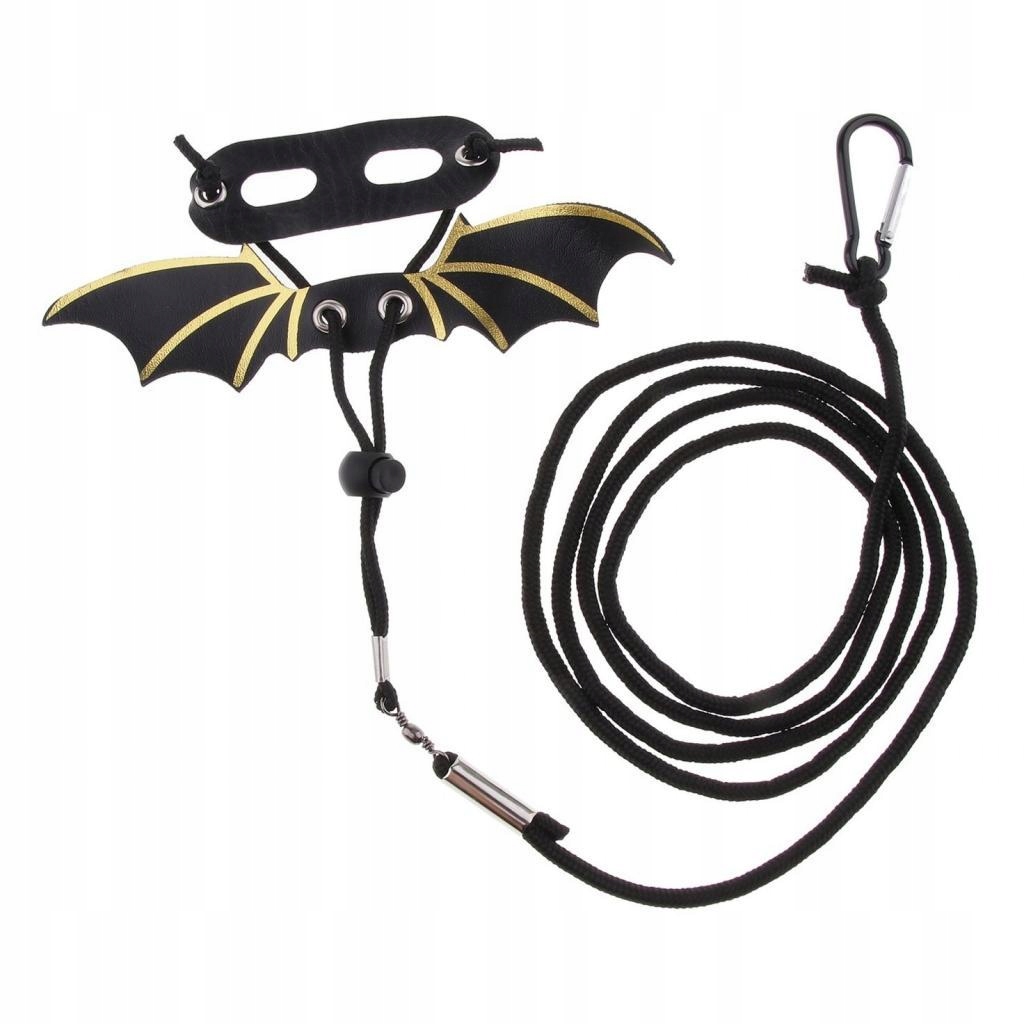 Повод с жгутом для попугаев и птиц в черном + черном + золото-S-S
