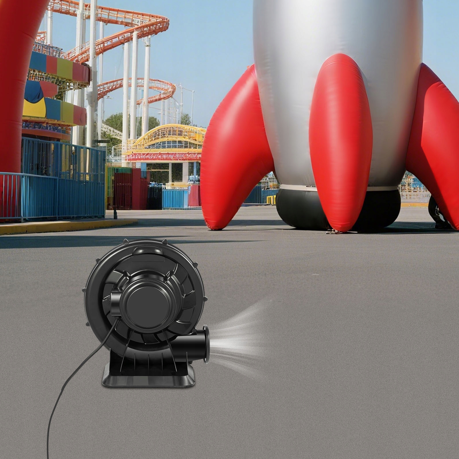 Может использоваться для моделей надувных арок длиной 9,84–32,8 футов (около 2,9–9,9 м) и надувных батутов площадью около 107,63 футов. (ок. 32,9 м²). Также подходит для надувных моделей с воздухозаборником, превышающим внешний диаметр воздуховыпускного отверстия вентилятора, который составляет 3,93 дюйма (около 9,9 см).