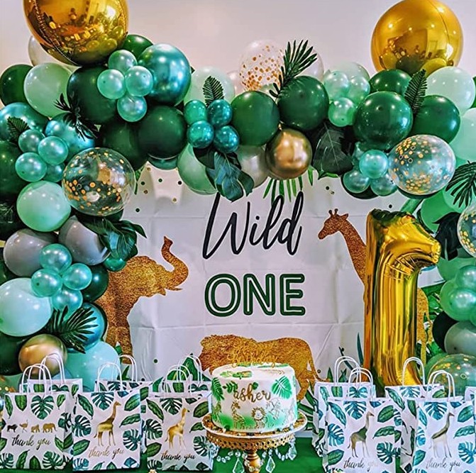 Набор из 60 воздушных шаров зеленого, белого и бутылочно-зеленого цветов