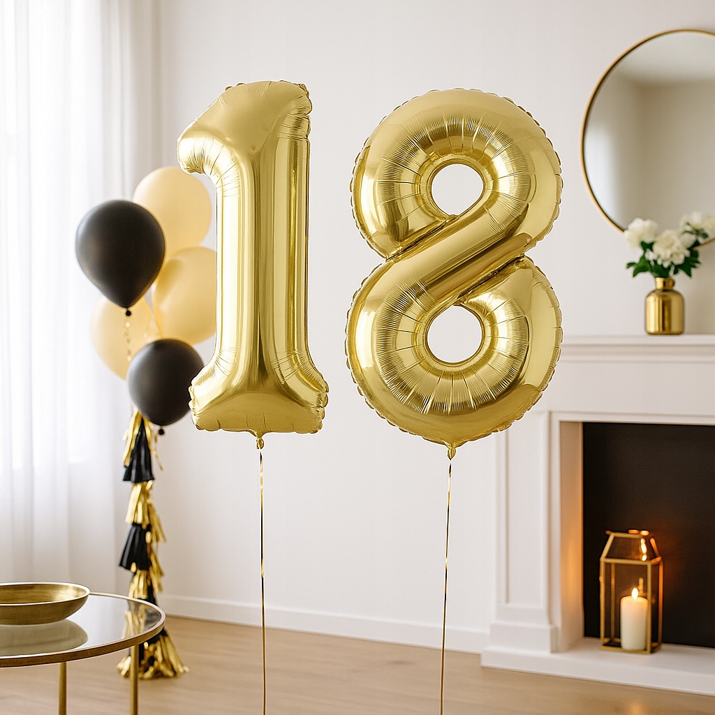 Воздушные шары для 18 -летия - набор номеров 1 и 8 в шампанском (2 шт.) Этот набор пластиковых воздушных шаров 85 см в форме 1 и 8 в элегантном шампанском цвете является абсолютным необходимостью для 18-летия! Наши воздушные шары гарантируют качество, долговечность и стиль. Идеально как фоновое украшение, для фотосессии, для установки на торте или в качестве подарка, не являющегося ложкой.