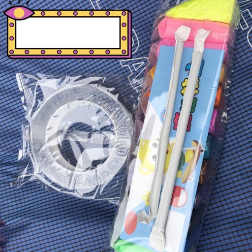 Как использовать: 1. Отрежьте часть ленты (как можно длиннее); 2. Сложите его пополам и вложите в трубочку, изготовьте принадлежности и аккуратно прижмите края; 3. Оторвите бумажную подложку на поверхности и будьте осторожны, чтобы не склеить среднюю часть; 4. Просто пускайте пузыри в трубочку.