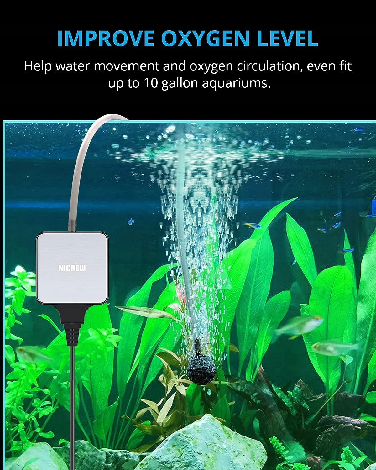 Экономия энергии: эффективность воздуха 18 л/ч при использовании всего 1,5 Вт, подходит для наноаквариумов объемом примерно до 40 л.