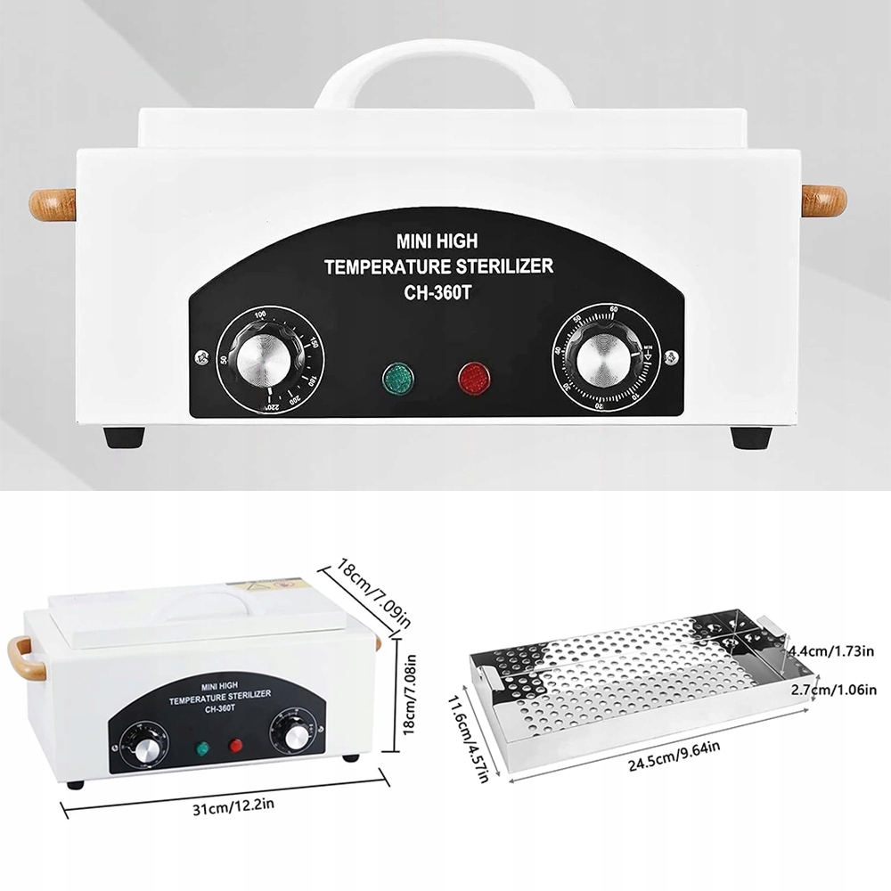 - Нагревательная проволока нашего стерилизатора может непрерывно нагреваться до 200°, 360° при закрытой стерилизации, что позволяет уничтожить 99,9% бактерий. Емкость внутреннего бака составляет 1,5 л, что позволяет стерилизовать больше инструментов одновременно.