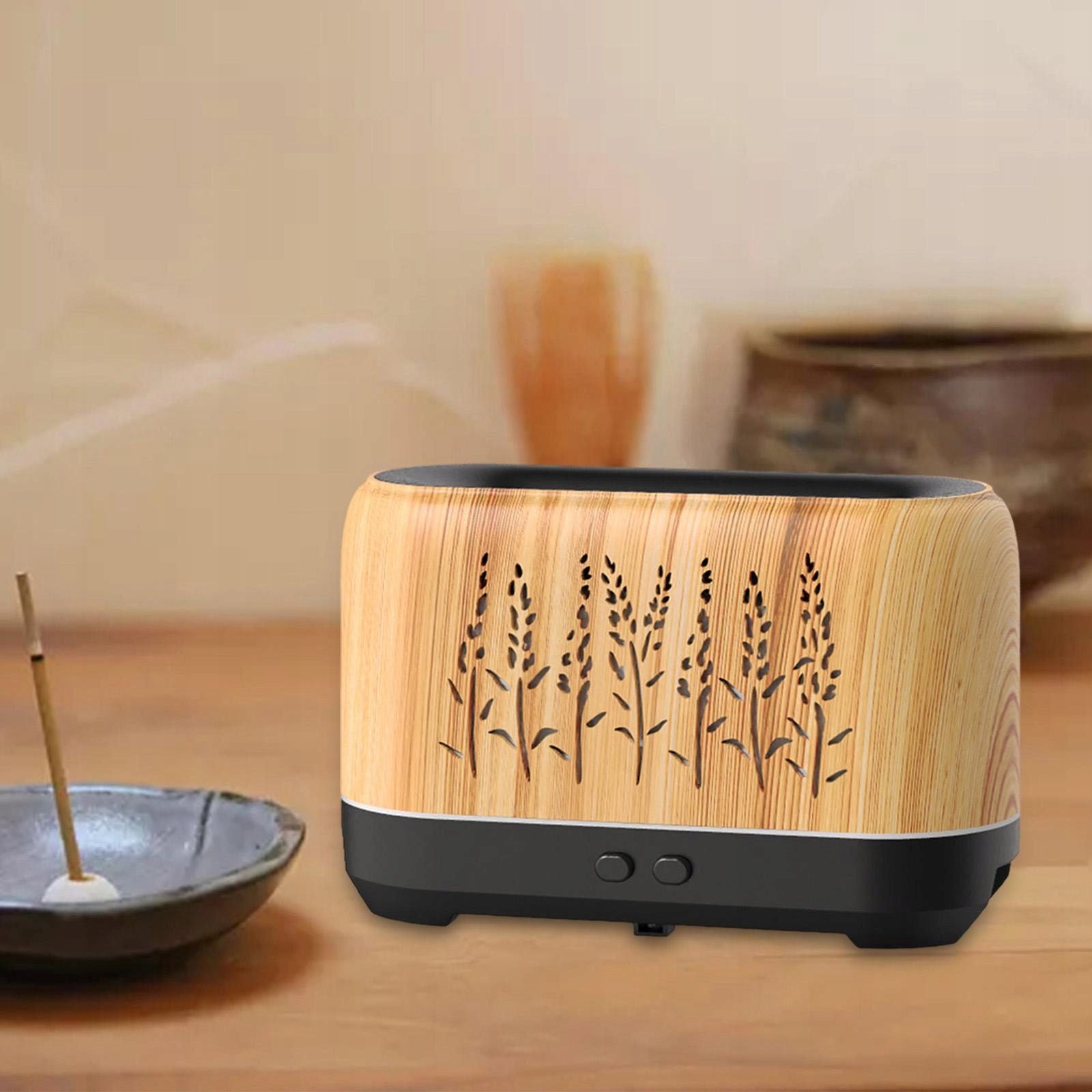Увлажнитель воздуха пламя аромат диффузор 200 мл USB Desk Office Office деревянное зерно черное зерно