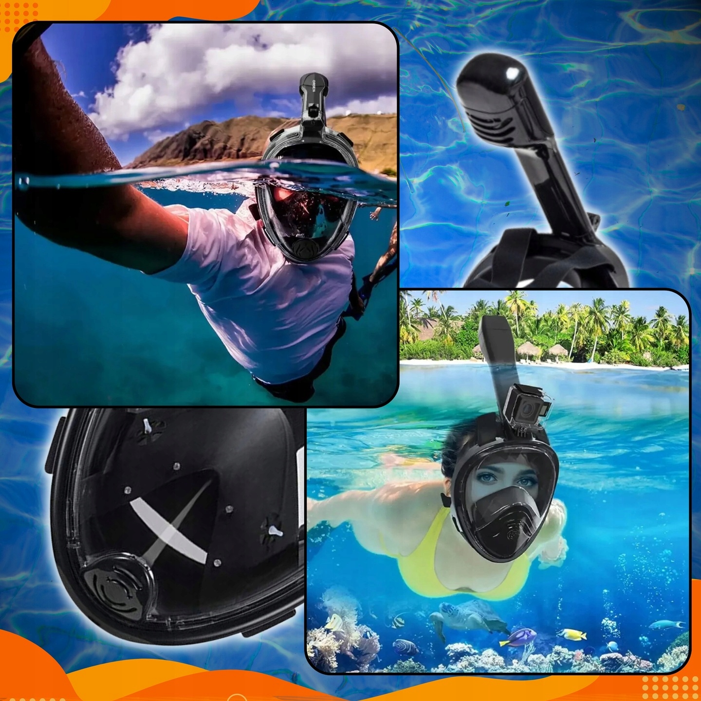 ✴mast для дайвинга и подводного плавания - полное время с трубкой. Естественное дыхание сквозь нос и губы. Идеально подходит для подводного плавания, поверхностного плавания и исследования подводных ландшафтов.
