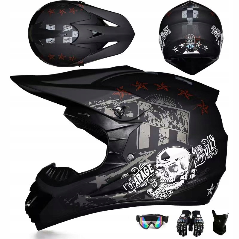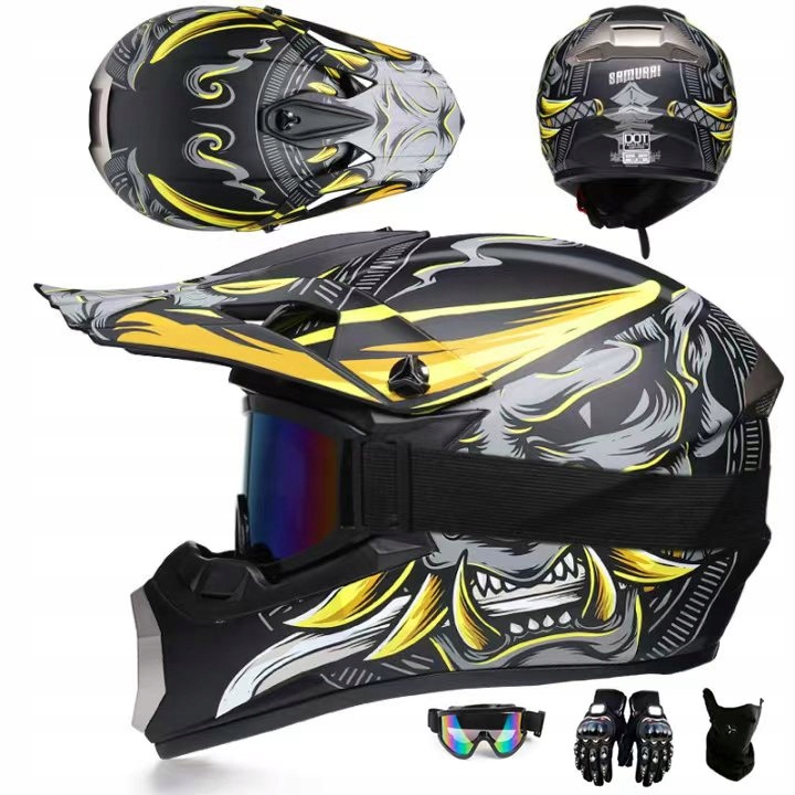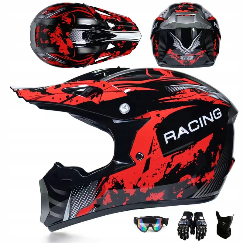 Детский комплект для мотокросса с полным лицом - внедорожные очки + перчатки + шейные гетры
