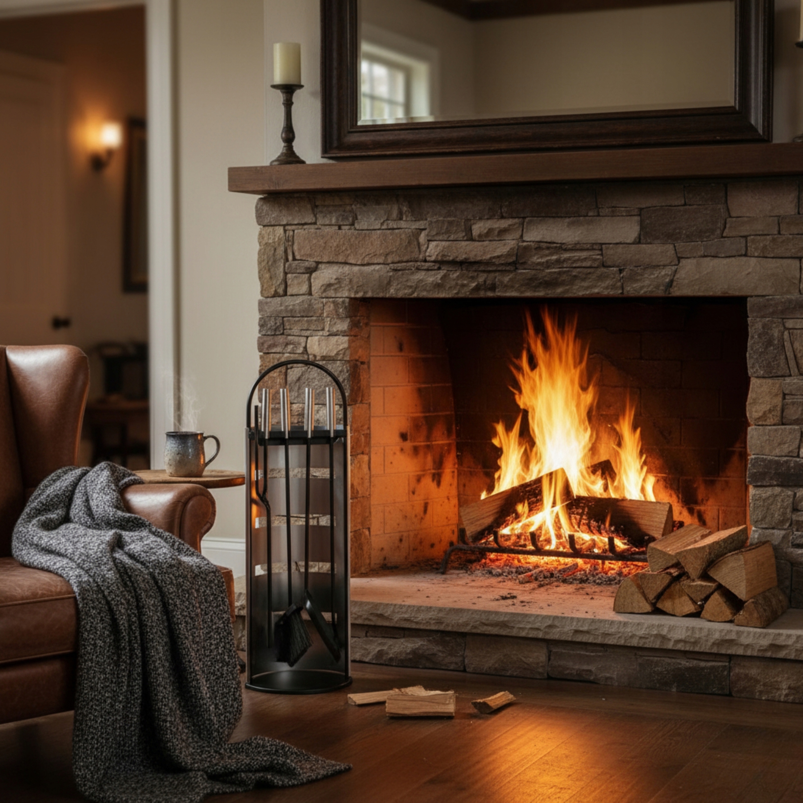 - Решение типичных проблем: беспорядок вокруг камина, нехватка места для инструментов, опасность ожога при обращении с дровами, трудности с перемещением комплекта между комнаты