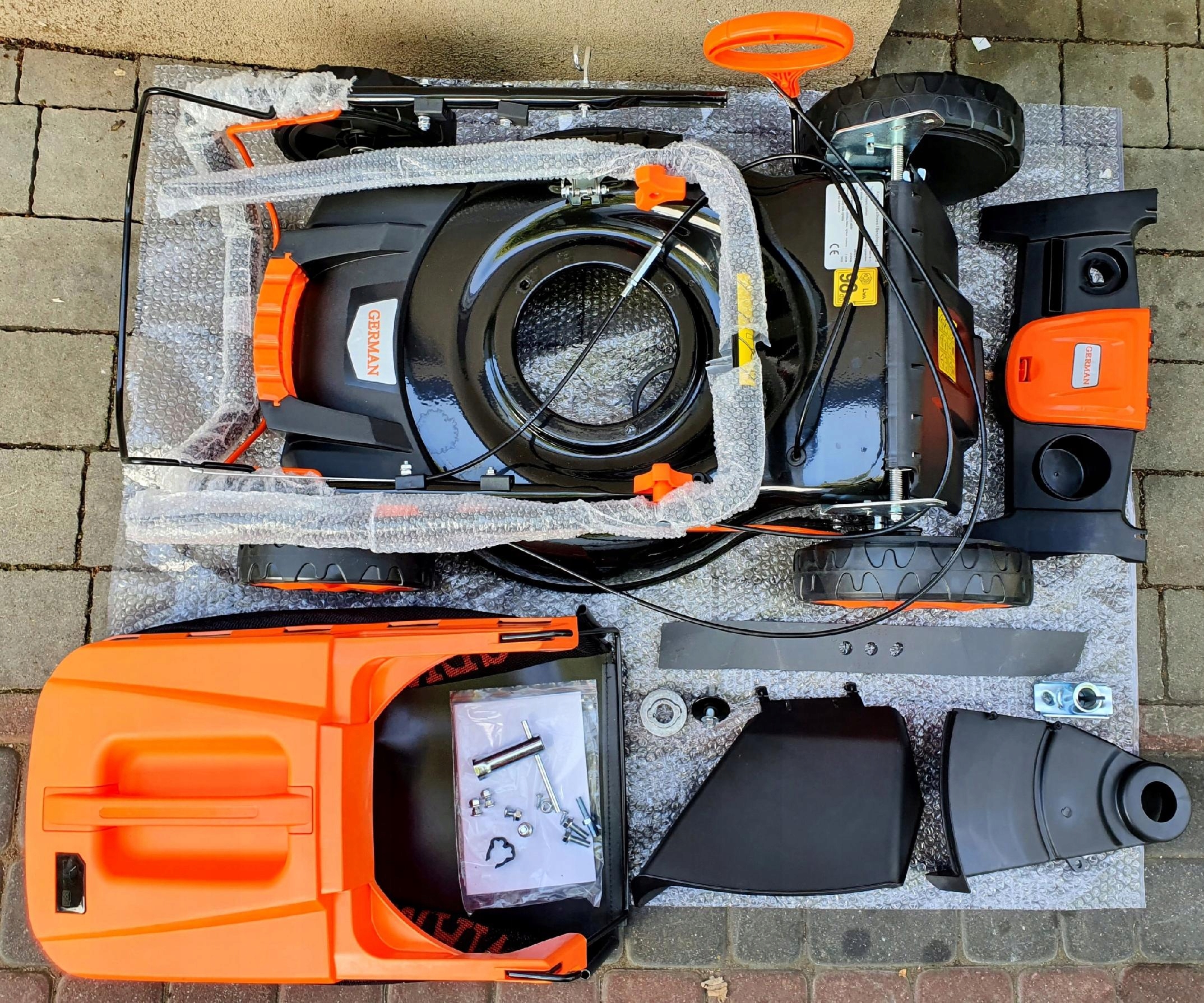 - Функции 9 в 1 (сборка в мешок, измельчение, боковой выброс, прочесывание травы, задний выброс, привод)