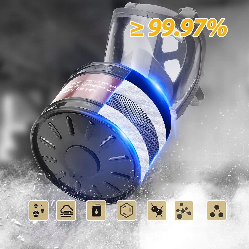✔️【Эргономичный и удобный】: Противог изготовлен из высококачественной резины и удобен в ношении. Регулируемое оголовье подходит большинству людей. ПРИМЕЧАНИЕ. С этим полнолицевым респиратором нельзя носить очки. После ношения необходимо провести испытание на утечку.