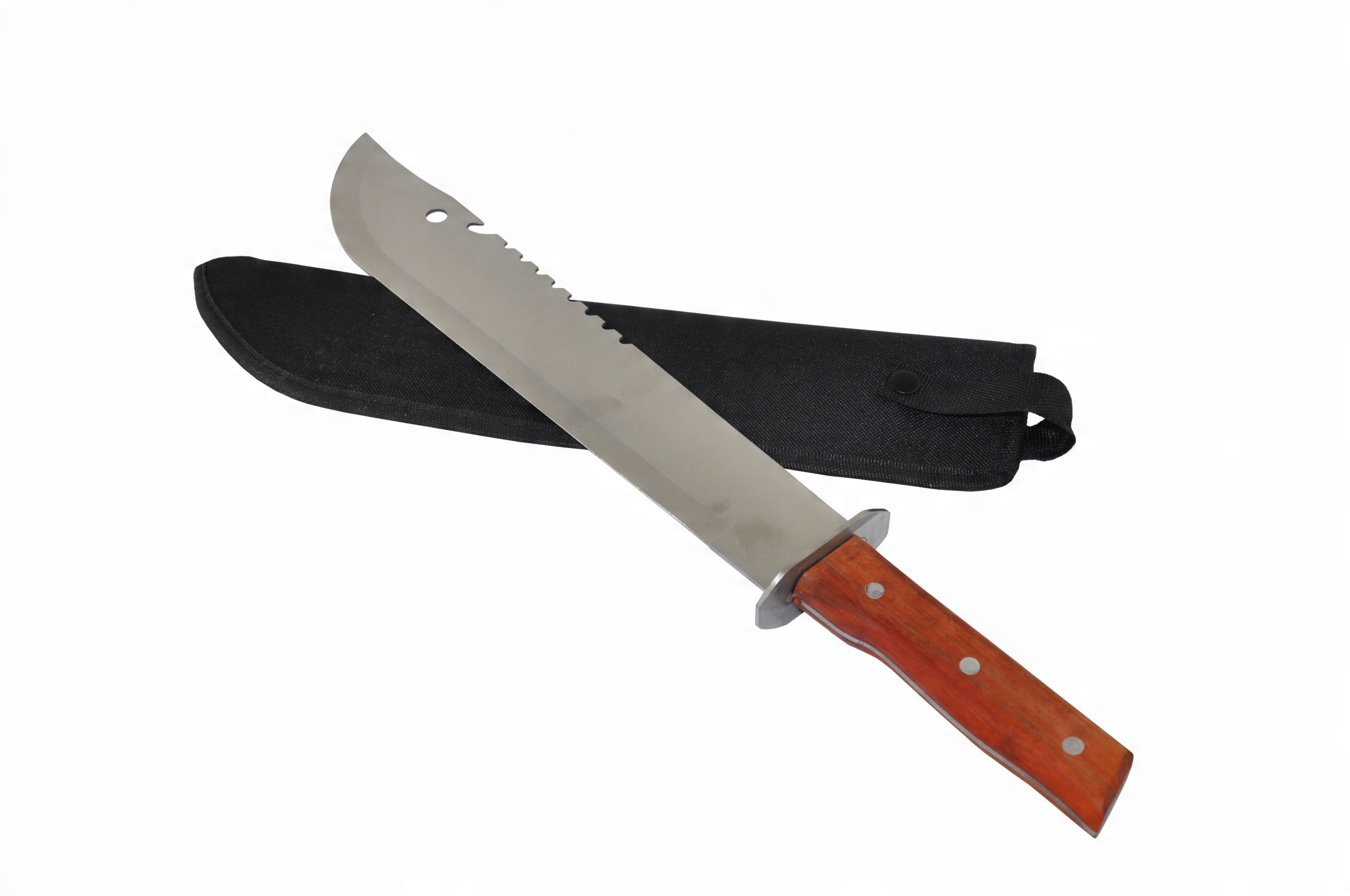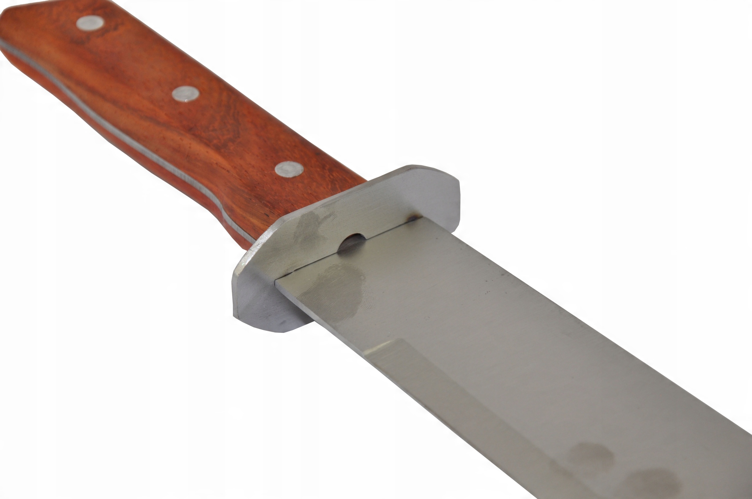 Двойное лезвие имеет как тонкий край для резки кустарников и виноградных лоз, так и край поперечной пилы для режущих ветвей, ветвей и небольших деревьев. Кроме того, мачете имеет крышки для крышки