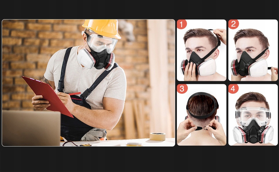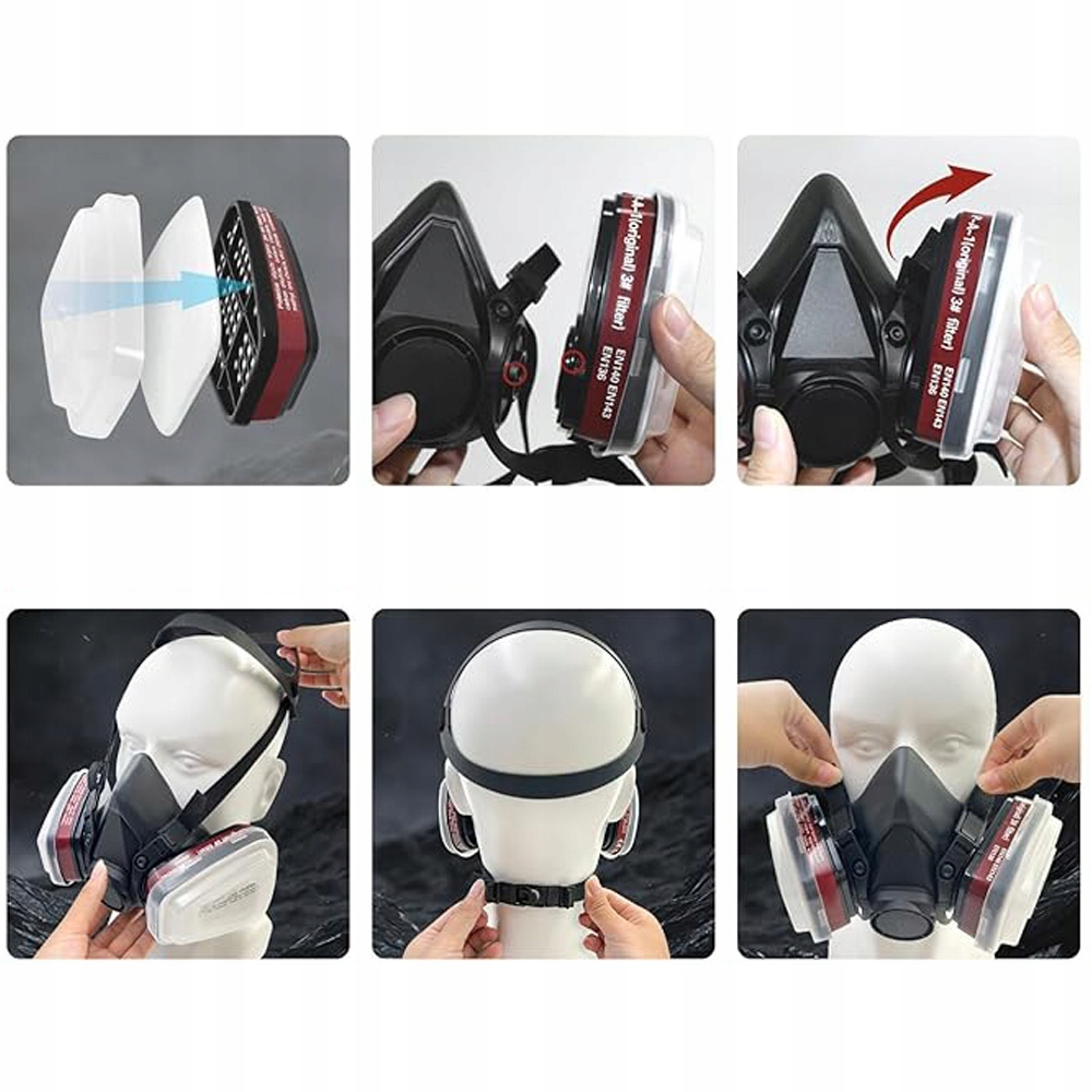 МАСКА ДЛЯ КРАСКИ ЗАЩИТНАЯ ПОЛУМАСКА ПРОТИВОПЫЛЕВЫЙ НАБОР С ФИЛЬТРУЮЩИМИ КАРТРИДЖАМИ