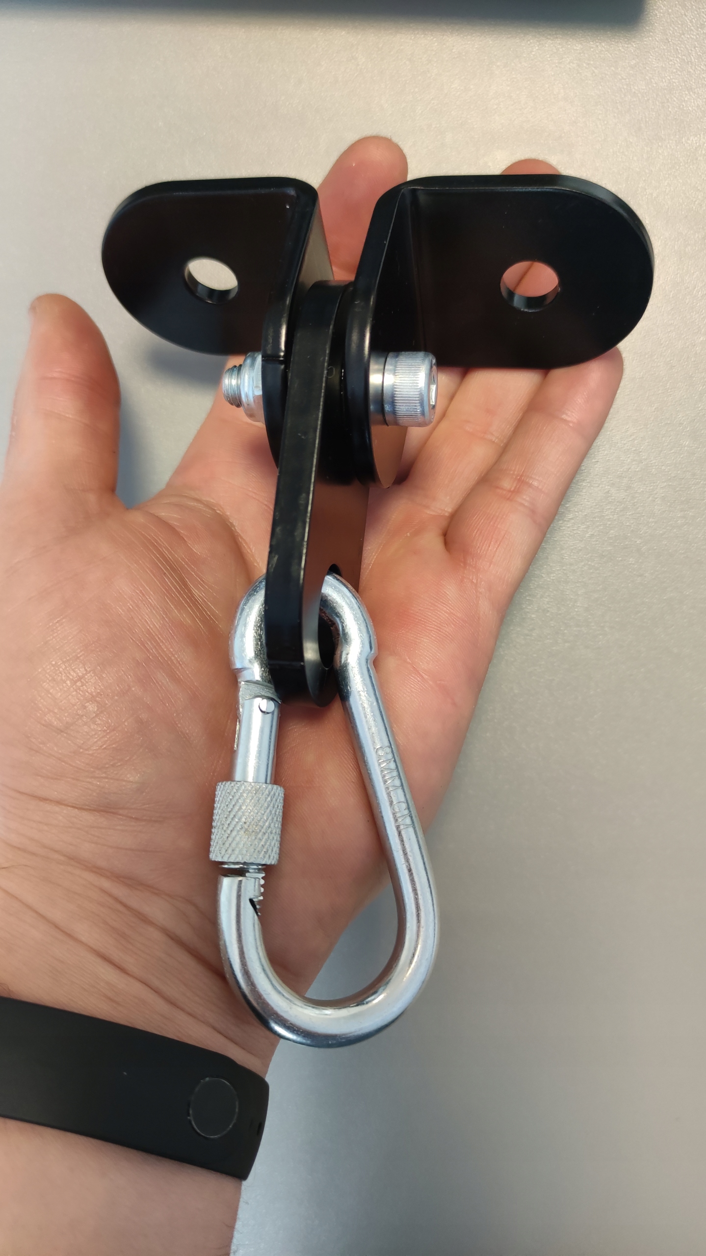 На этом аукционе представлены 2 шарикоподшипниковых качельных крепления с двумя отверстиями диаметром 12,5 мм + 2 карабина диаметром 8 мм с предохранителем