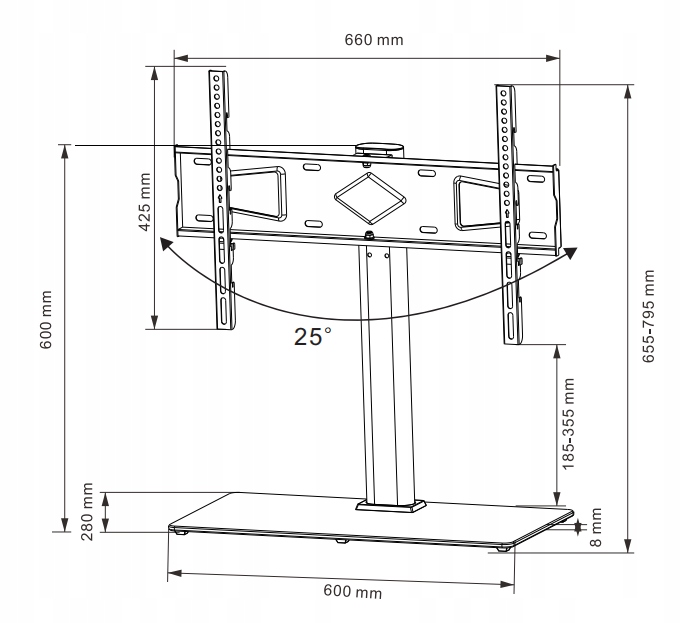 - регулируемая высота стойкив диапазоне 655-795 мм