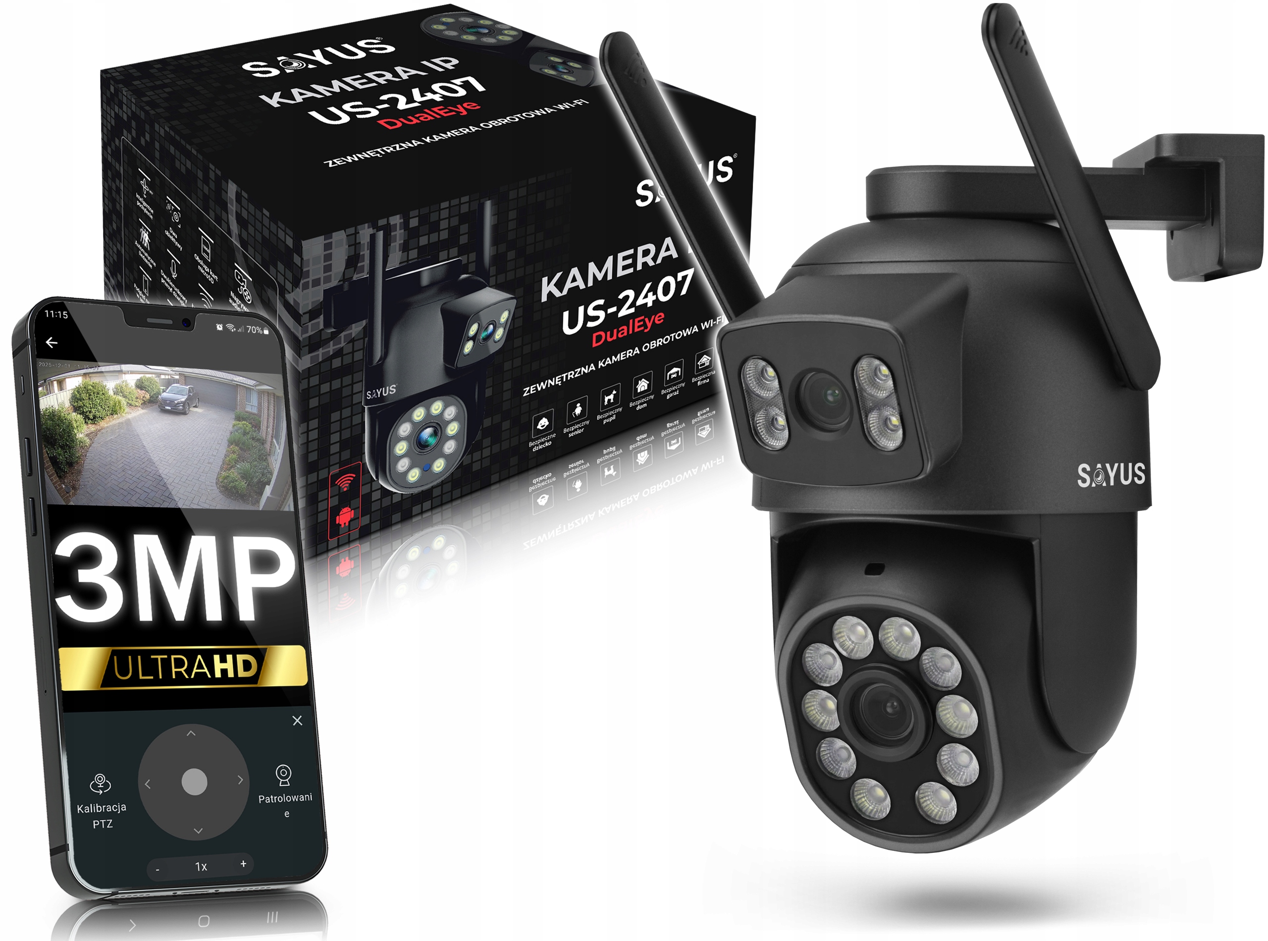 ВРАЩАЮЩАЯСЯ НАРУЖНАЯ ДВОЙНАЯ IP-КАМЕРА WIFI 5xZOOM 3MPx ULTRA HD ОБНАРУЖЕНИЕ