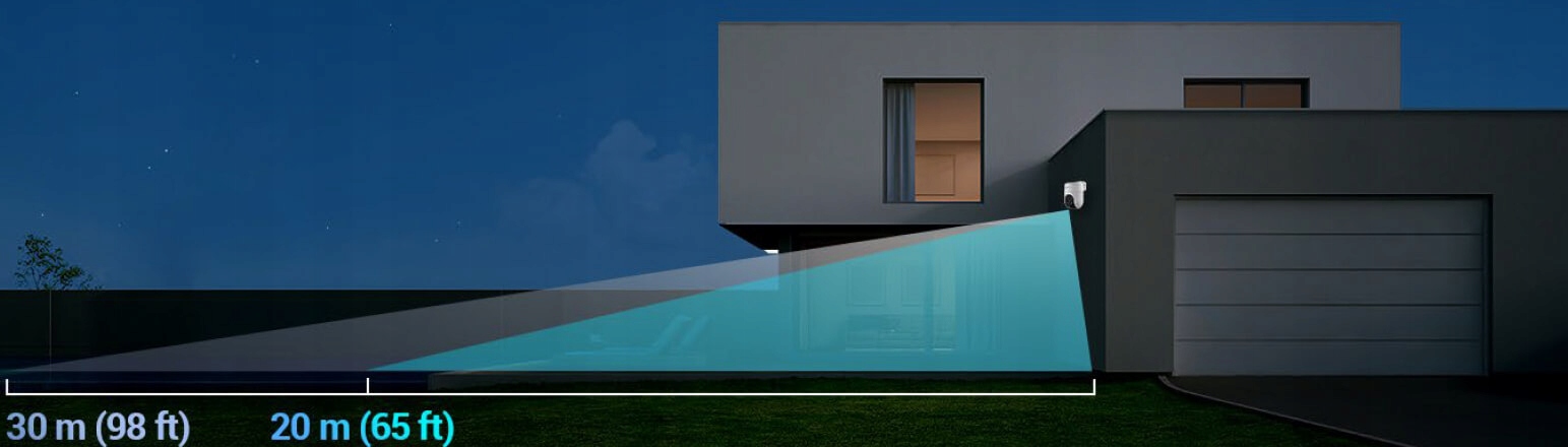 -Ночное видение с монохромным изображением. Если вы не хотите, чтобы прожекторы беспокоили соседей, воспользуйтесь приложением EZVIZ и включите инфракрасное ночное видение.