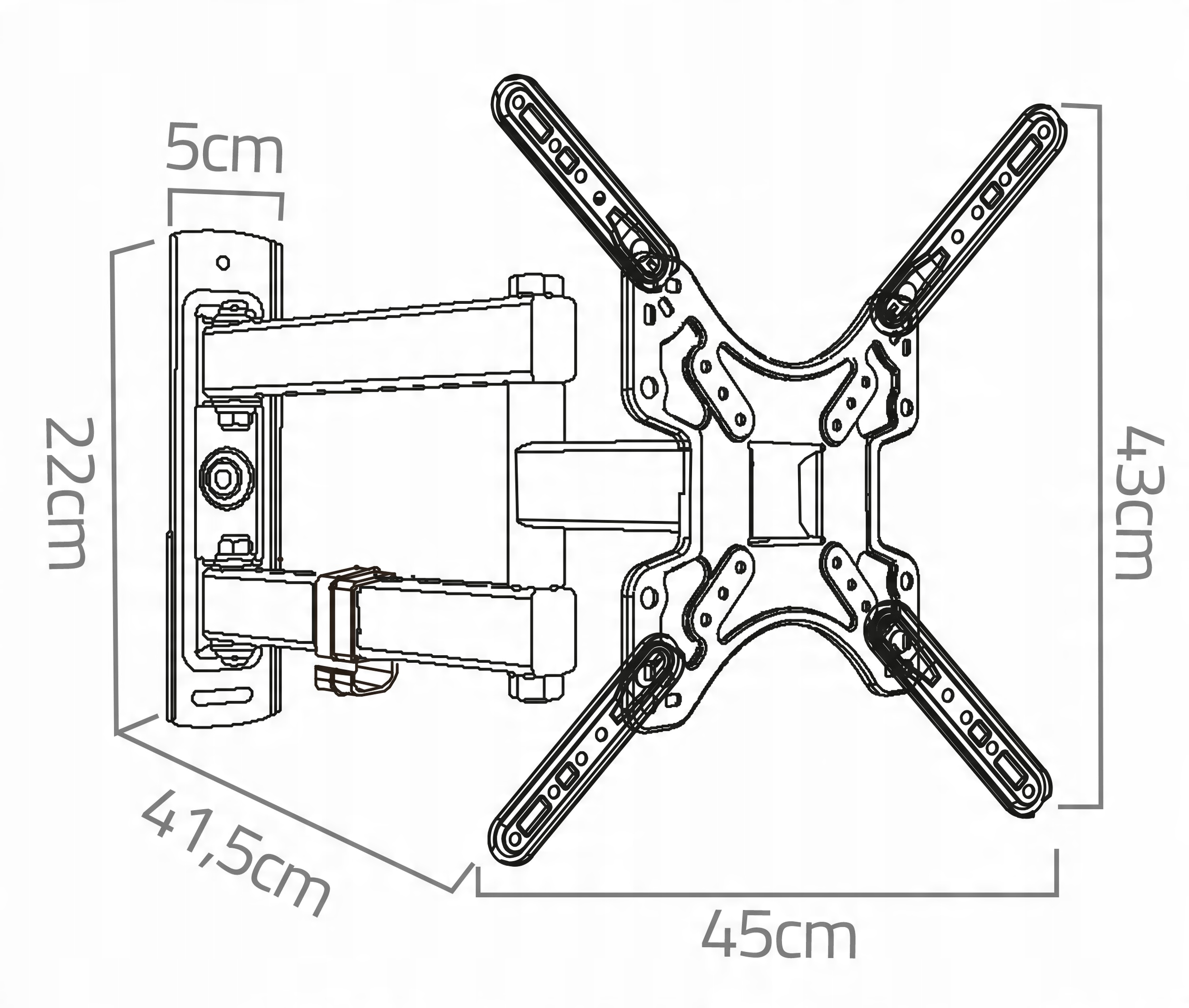 - Регулировка расстояния между кронштейнами - подогнать держатель под стандарт VESA от 75 х 75 до 400 х 400 мм.