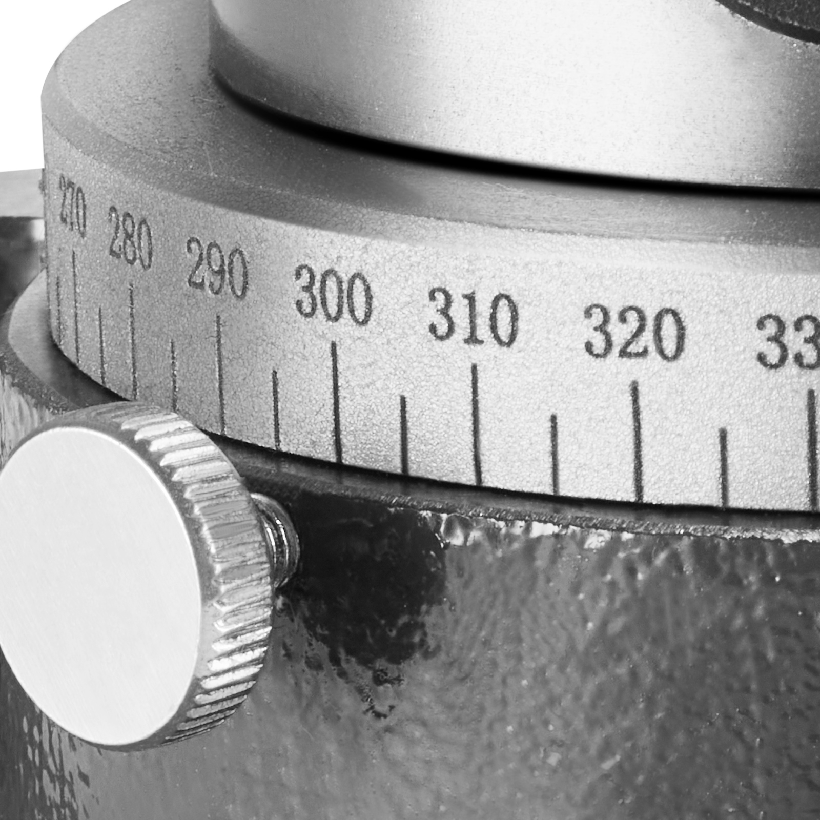 Высокая точность одним нажатием кнопки: фрезерно-поворотный стол управляется с помощью ручки и имеет кристально чистую шкалу как на ручке, так и на столе для точных измерений. Масштаб ручки равен 100, а сам стол имеет шкалу 360 градусов. Благодаря передаточному числу червяка 1:36 один оборот ручки поворачивает стол на 10 градусов, что идеально подходит для интуитивного управления и позволяет точно контролировать даже самые маленькие вращения.