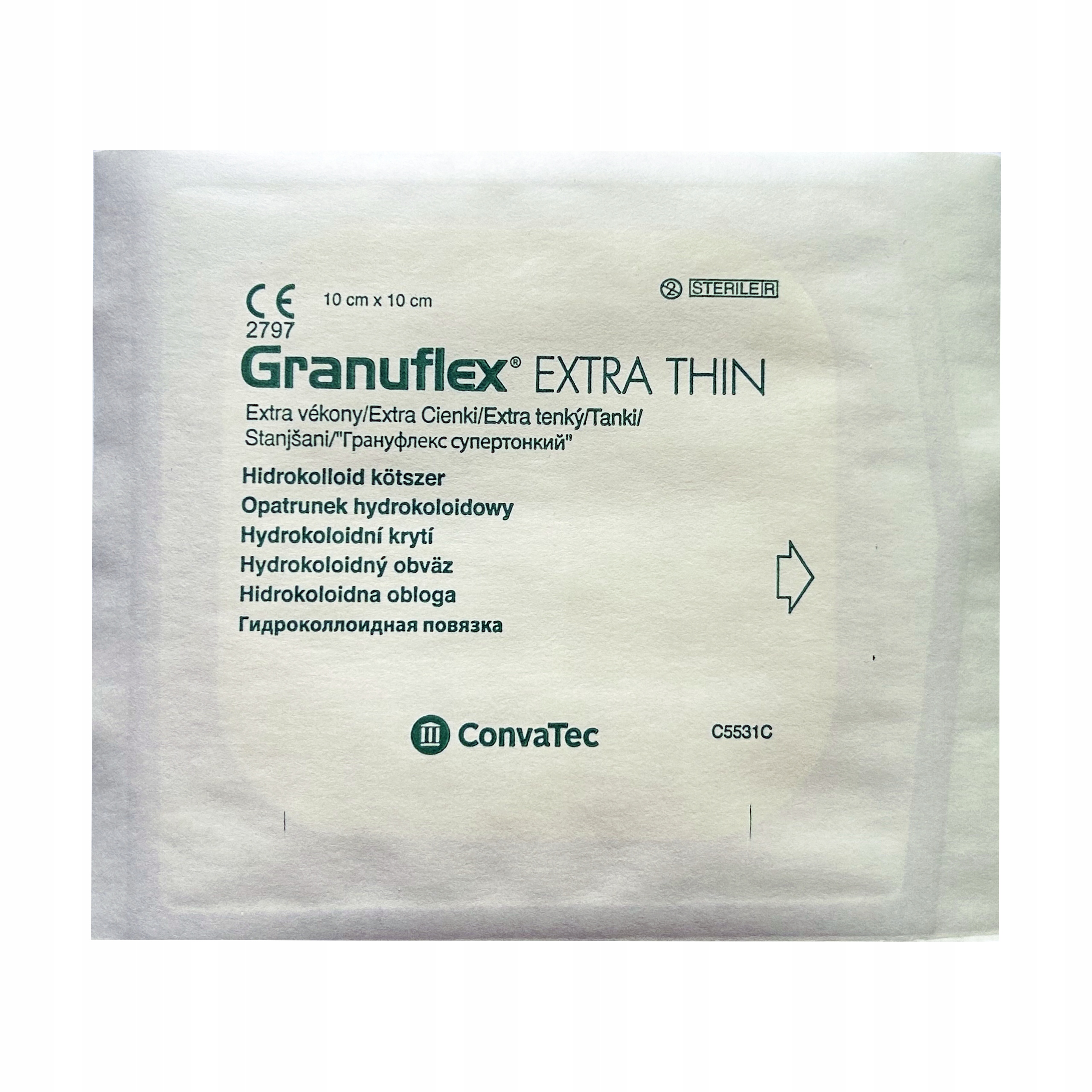 Granuflex™ Extra Thin представляет собой стерильную гидроколлоидную повязку, состоящую из внутреннего (контактирующего с раной) гидроколлоидного слоя на самоклеящейся полимерной основе и наружного слоя - полиуретановая мембрана. Под действием раневых выделений повязка создает влажную среду, способствующую процессу заживления, поглощает экссудат и поддерживает аутолиз некротических тканей.