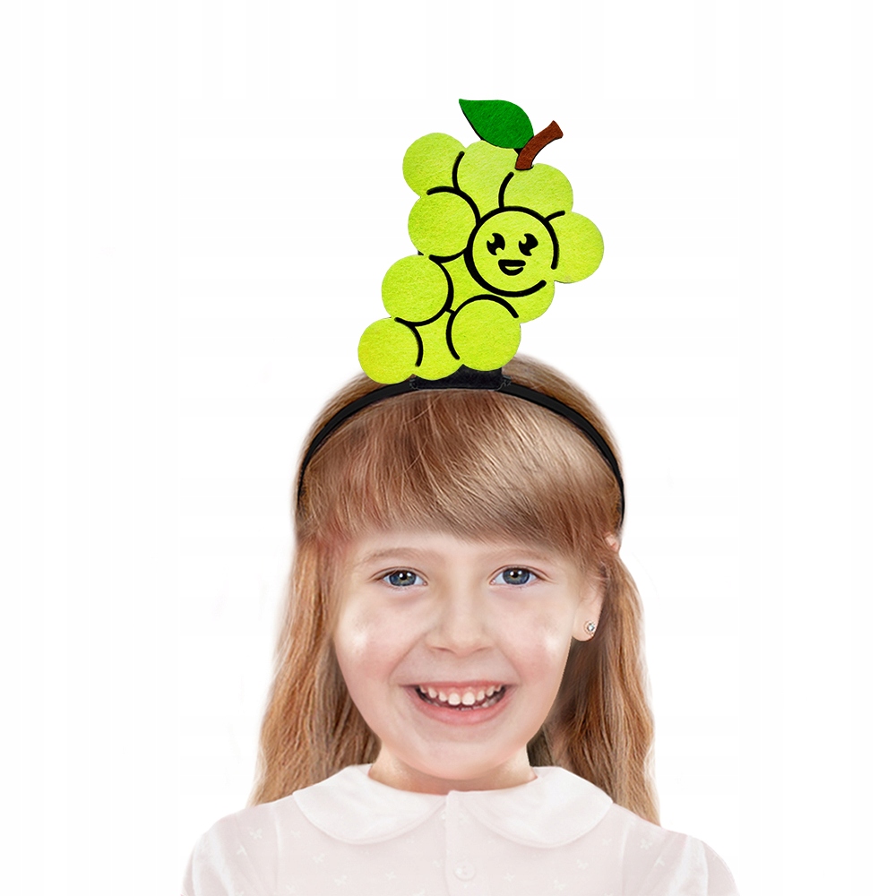 Повязка на голову с салатовой улыбающейся виноградиной из фетра