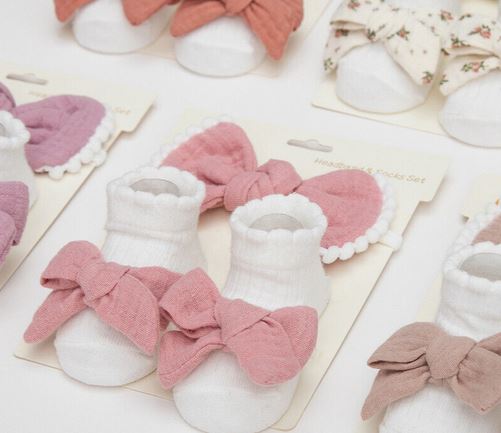 Set- Baby Band+ Socks h1> замечательная муслиновая группа для девушки. Группа адаптируется к форме головы ребенка. Группа без сжатия с белой отделкой. h2>